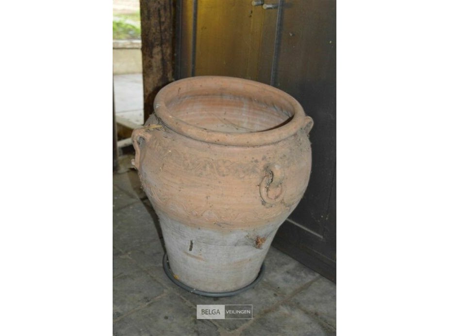 Terracotta en metalen bloempot