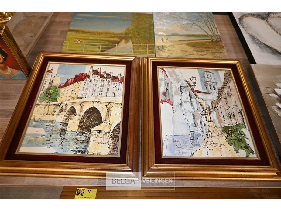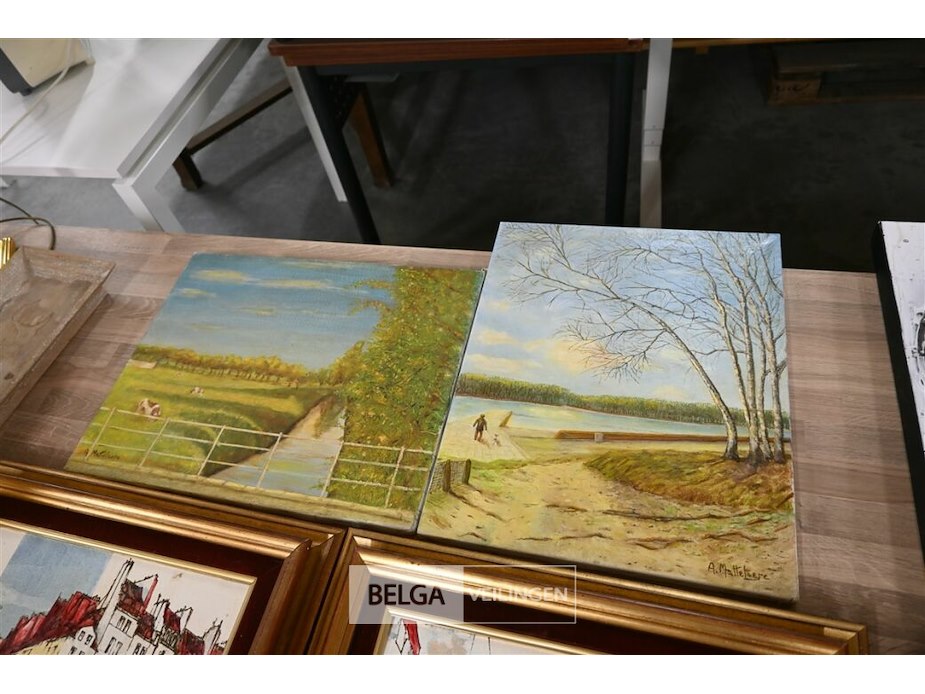 Partij schilderijen + lampen