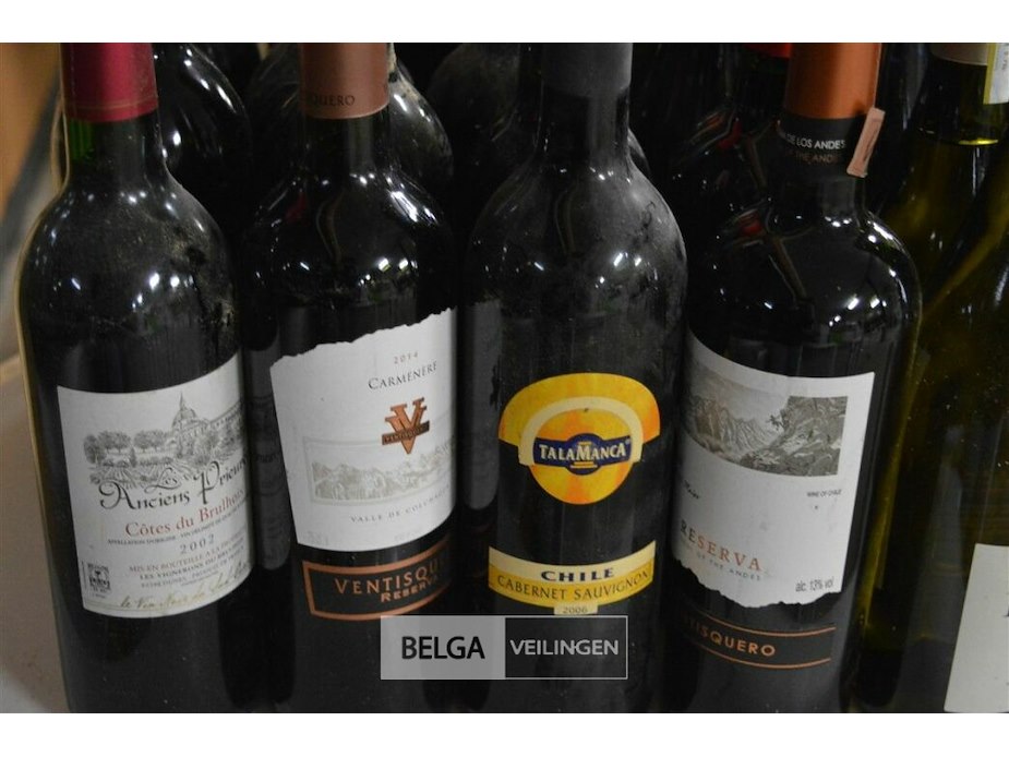 ±25 flessen diverse wijnsoorten