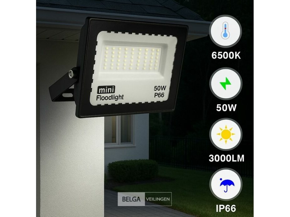Led schijnwerper 50w mini – 6500k koud wit – ip65 waterdicht (x12)