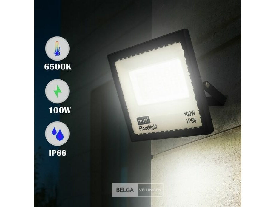 Led schijnwerper 100w mini – 6500k koud wit – ip65 waterdicht (x6)