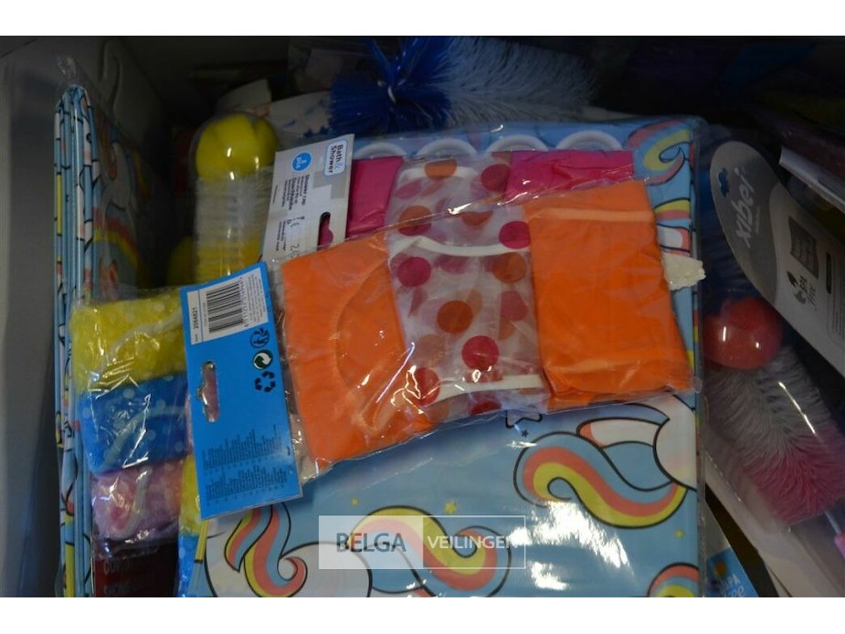 Doos div borstels, douchekapjes en gordijnen