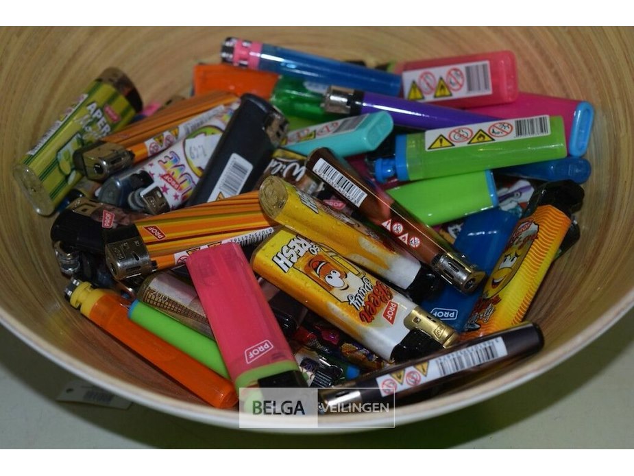 Kom met ± 60 div. aanstekers
