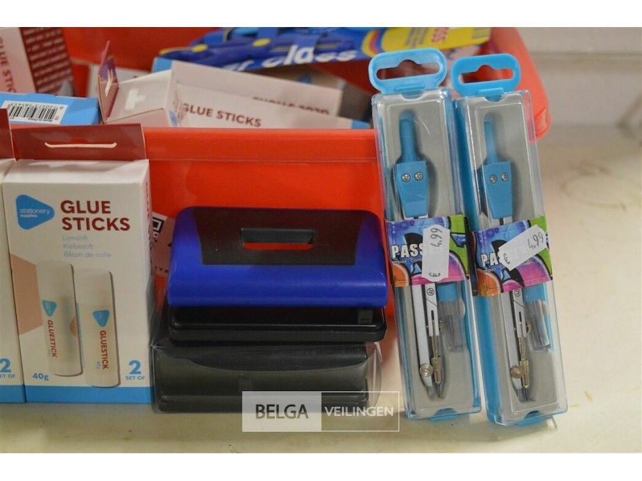 Partij div kantoorbenodigdheden( passer, lijm, perforartor)
