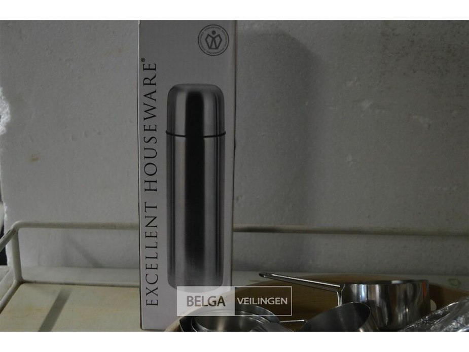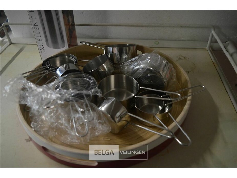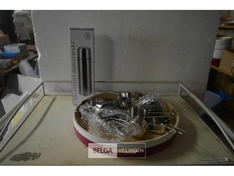 Schotel met thermokan en partij maatbekers