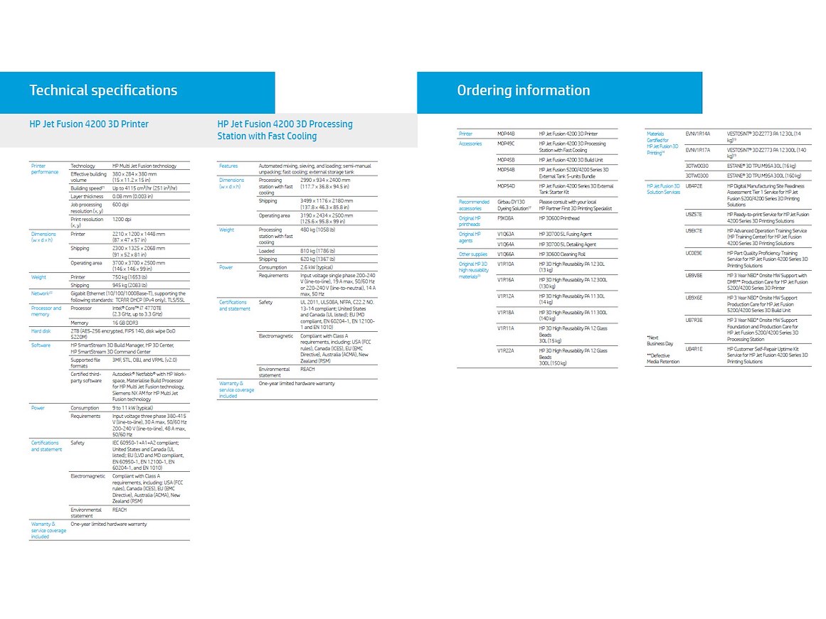 Hp jet fusion 3d 4200 printer + 3d build unit + processing & cooling station (incl. 40% virgin powder pa 12)