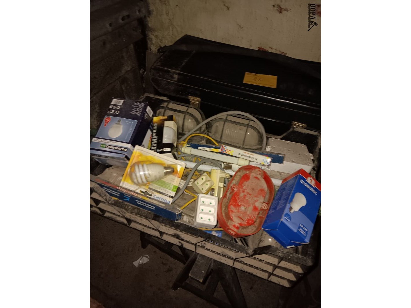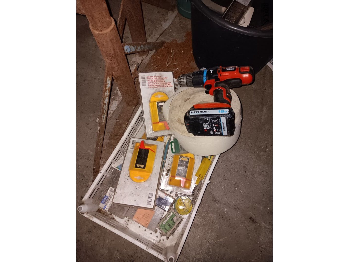 Stelling schragen en diverse onderdelen, zoals lampen, mesjes, …
