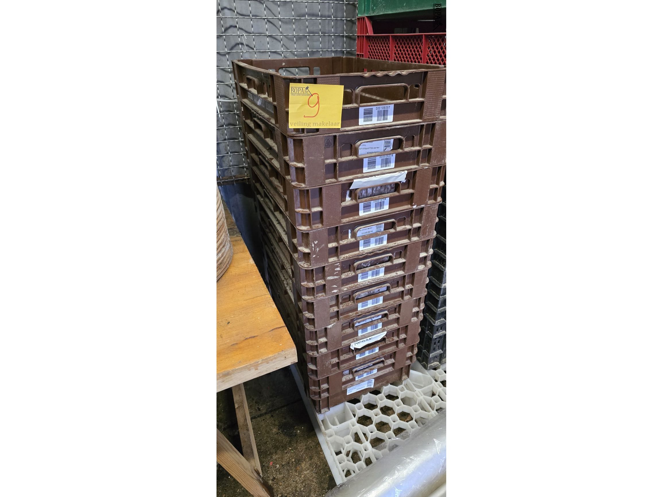 Lot 9 - bruine stapelbakken 9 stuks