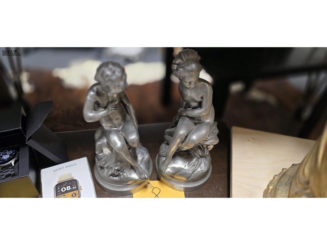 Set van tinnen beeldjes, Jongen en meisje H ong 27 cm