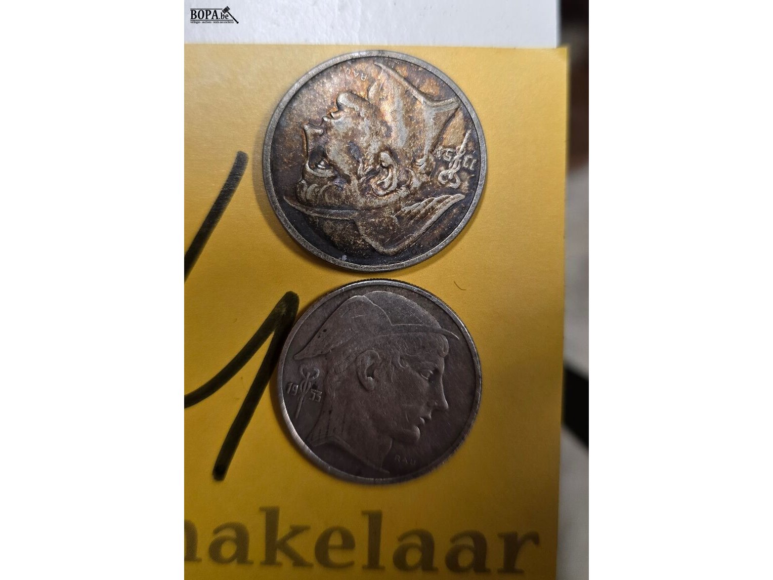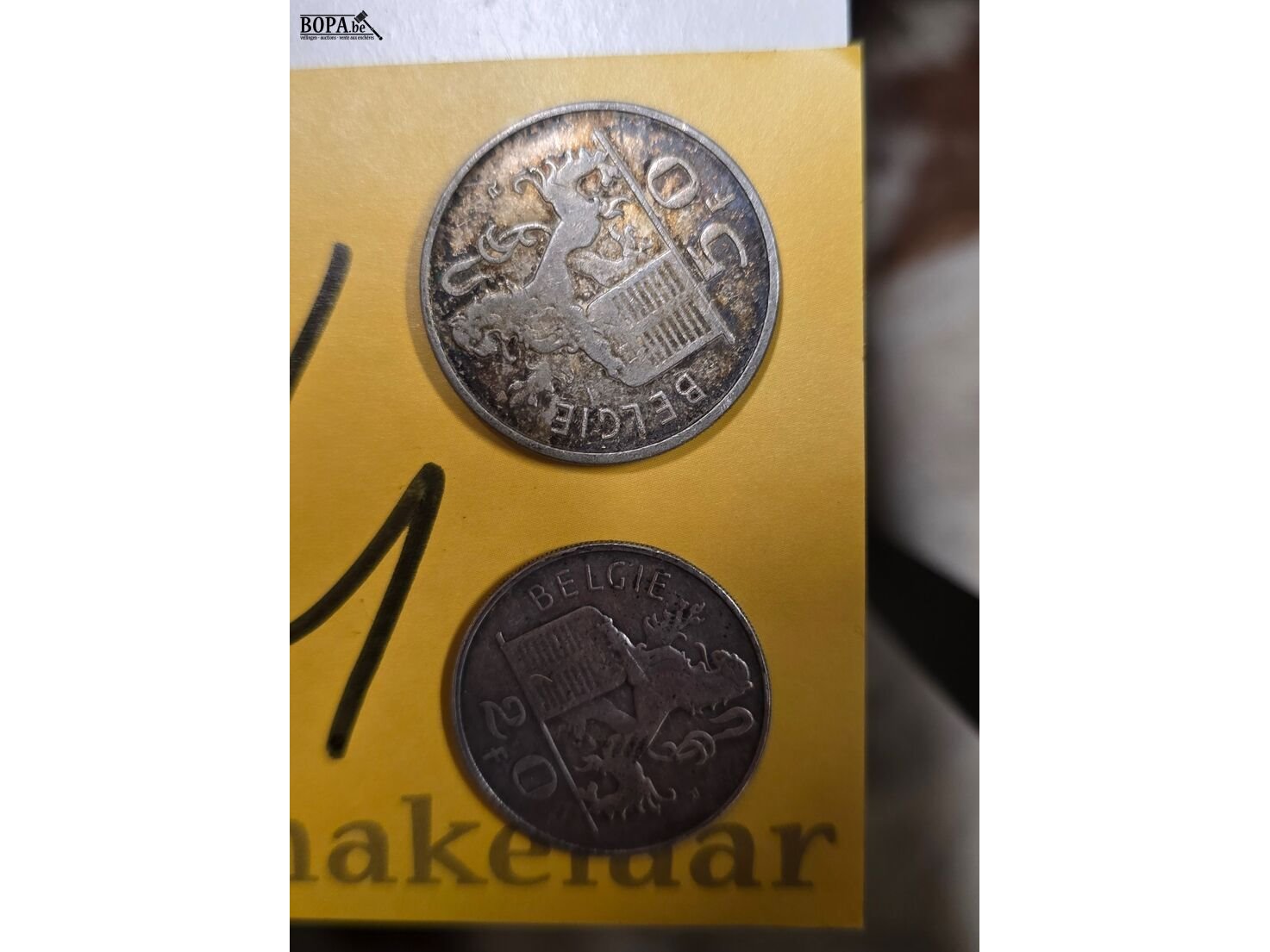 Lot 14 - zilveren munt 20 fr en bronzen munt 50 fr