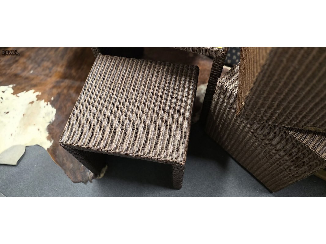 Set van 2 rotan bijzettafeltjes, afm 52 x 40 x H 50 cm en 40,5 x 39 x H 36 cm