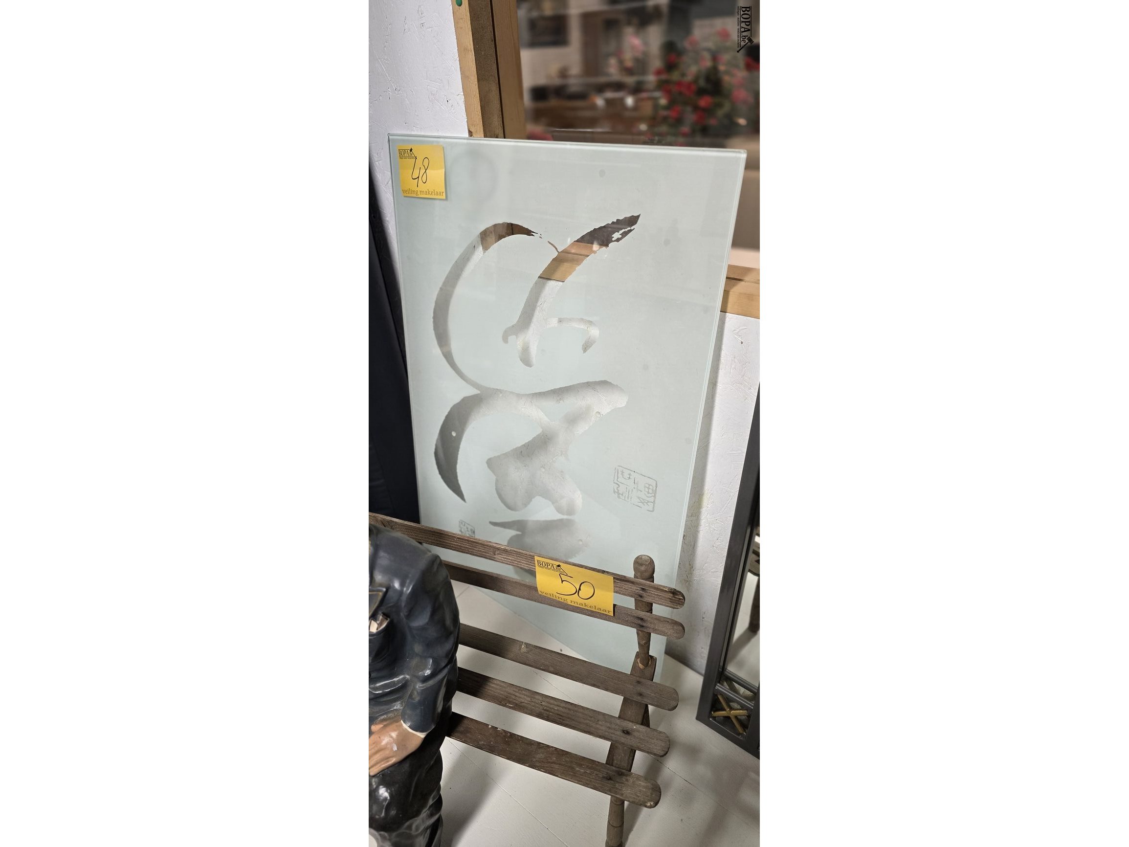 Lot 48 - dik glazen blad met tekening