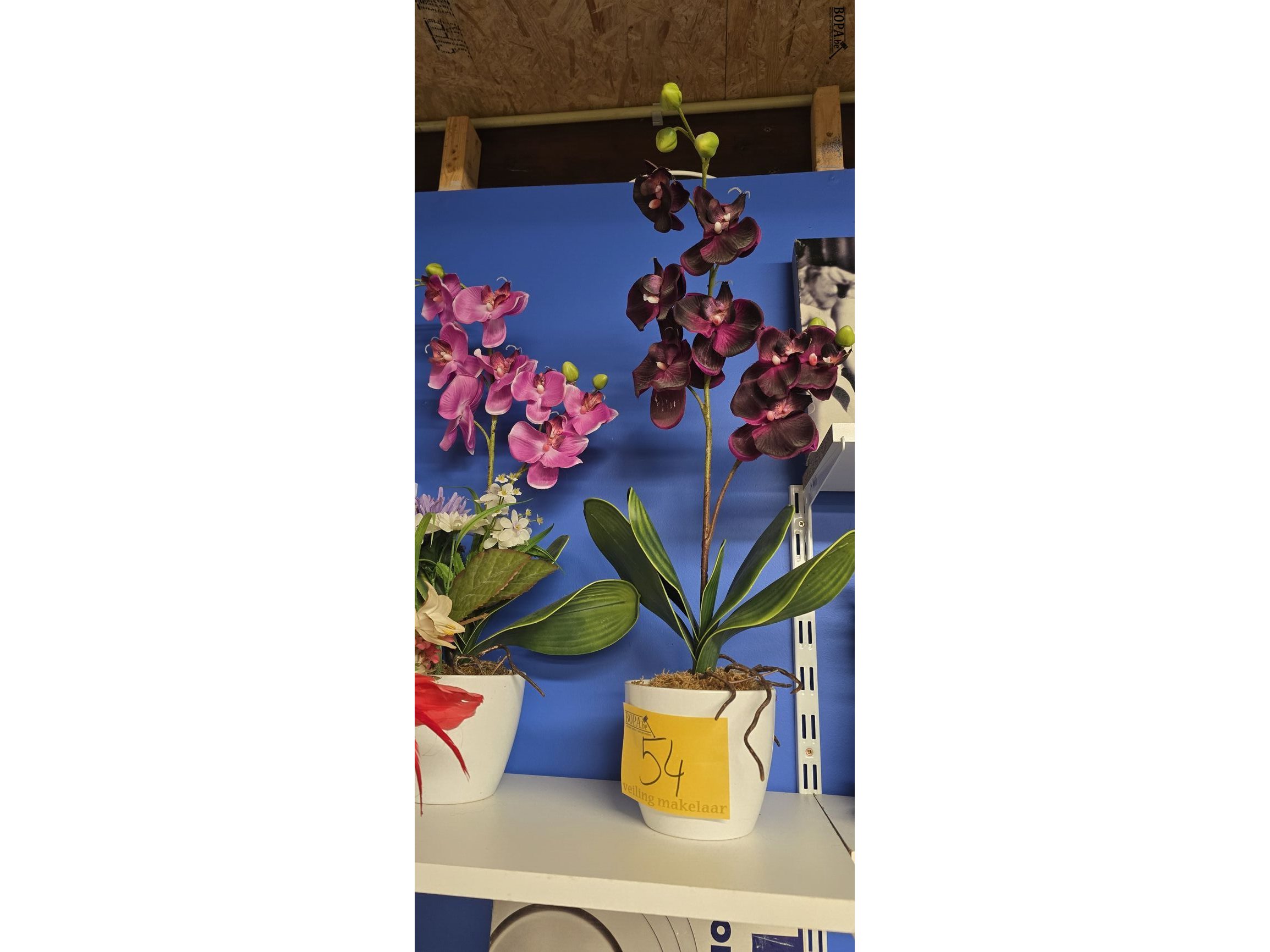 Lot 54 - lot kunstbloemen, 7 diverse potten
