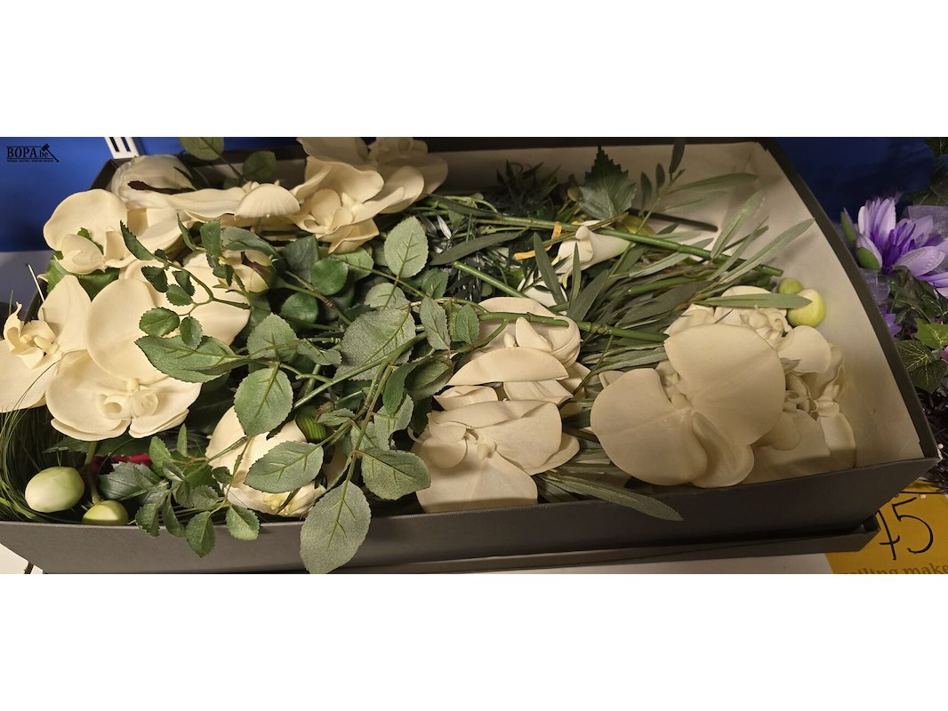 Lot 75 - lot droogbloemen een doos en een krans