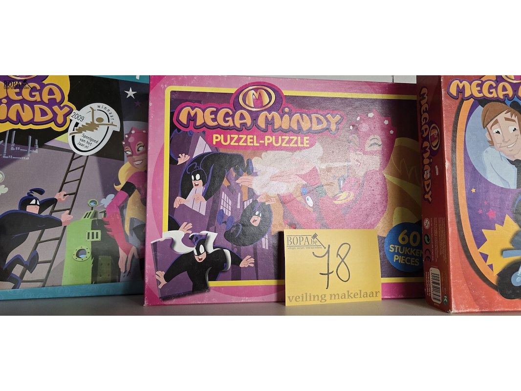 Mega Mindy speelset, gezelschapspel ' De ontsnapte boef' nieuw en 2 puzzels van 60 stukken