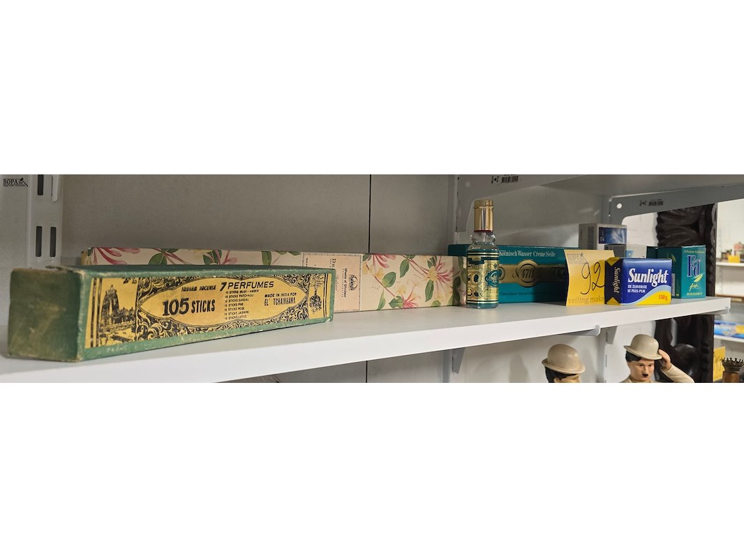 Geur lot, doos geursticks, geparfumeerd papier, 4711 zeep en parfum, sunlight zeep 2x, Dove zeep 2 x, en fa eau de cologne doekjes 4 x
