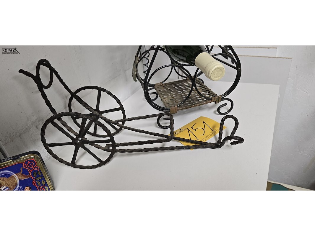 Lot 151 - metalen wijn fleshouders en fles wijn
