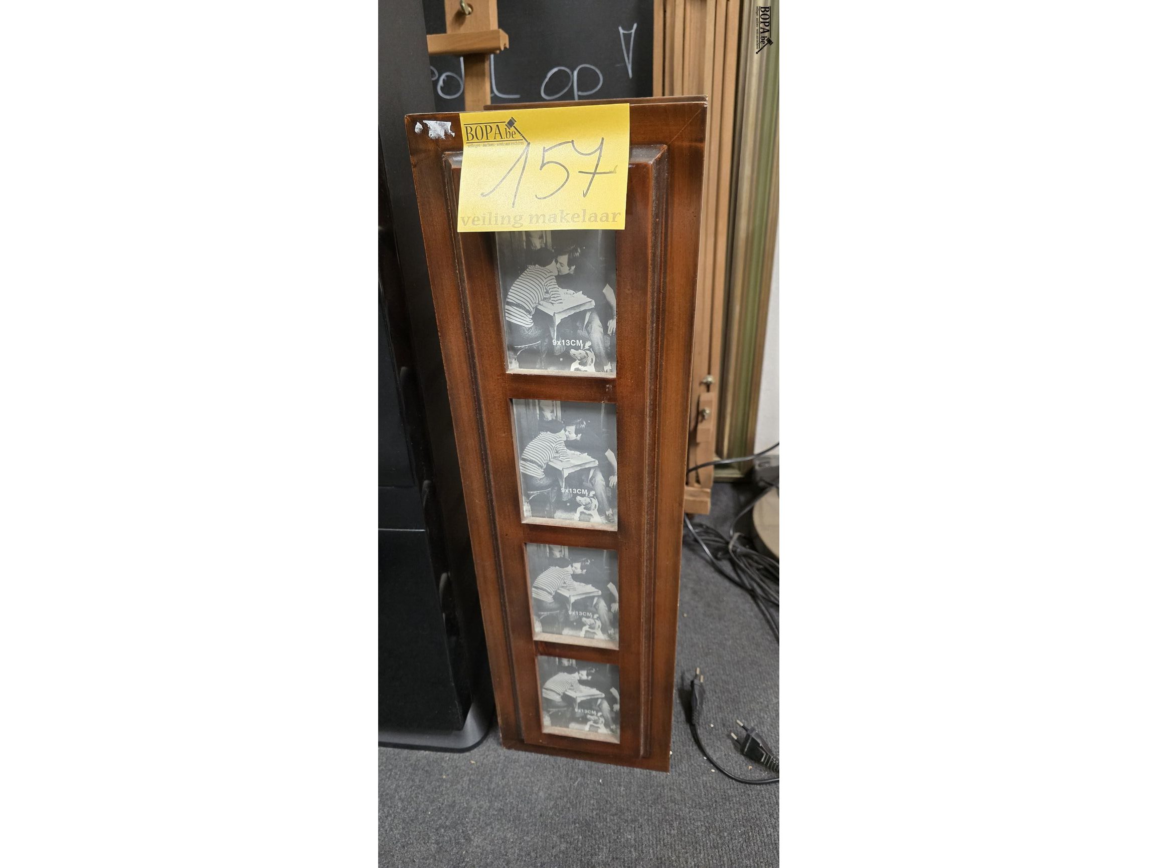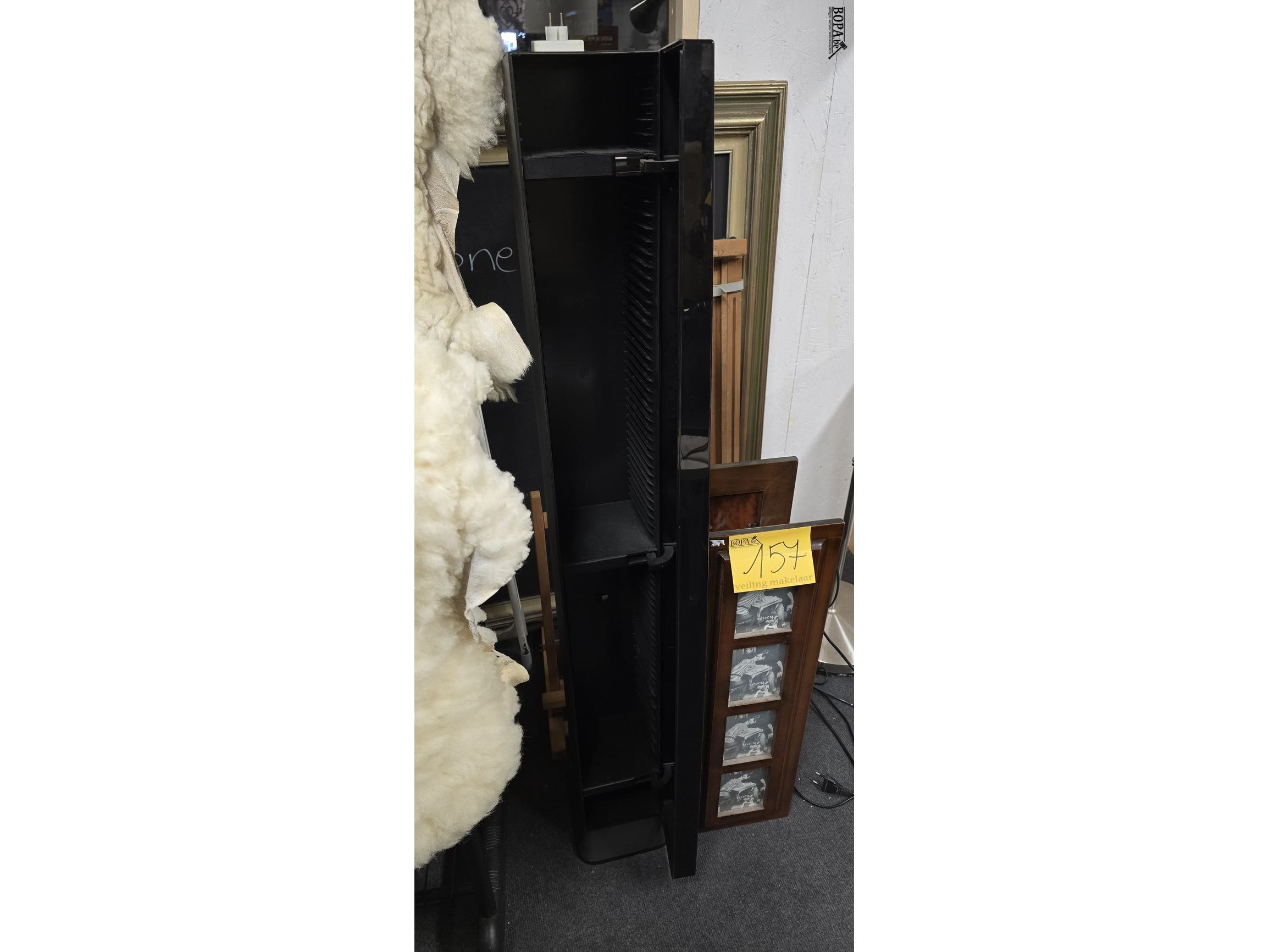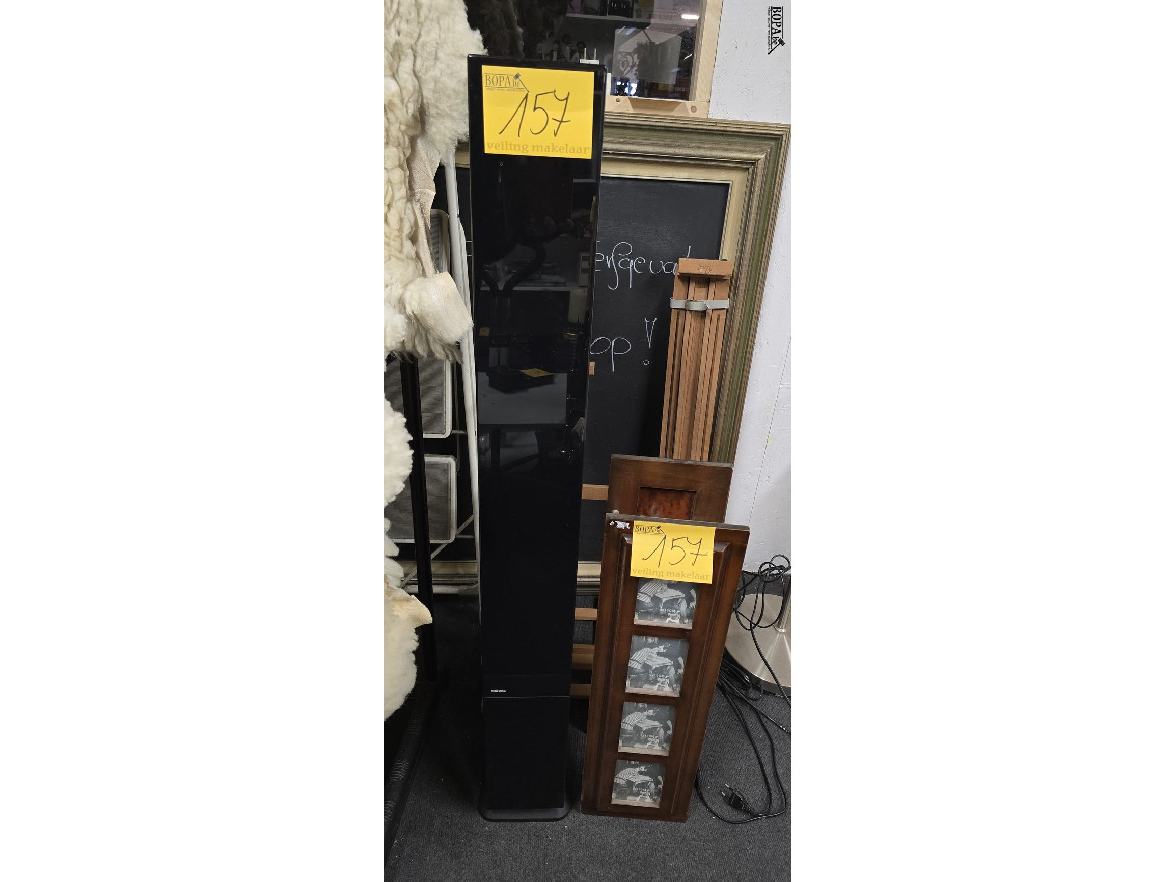 CD Houders 2 stuks, zwarte kunsstof met glazen deur hoogte 115 cm en houten met fotokaders hoogte 65 cm