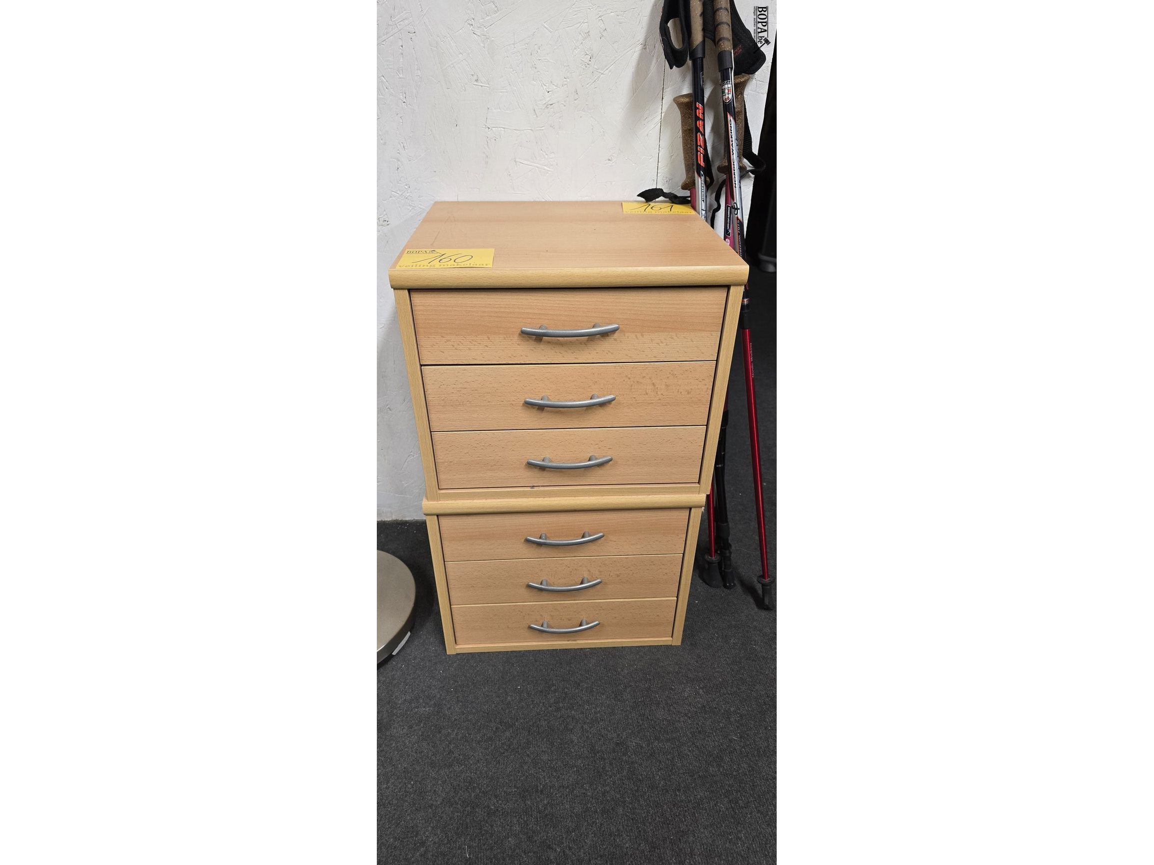 Lot 160 - nachtkast in beuk met 3 lades, 2 stuks