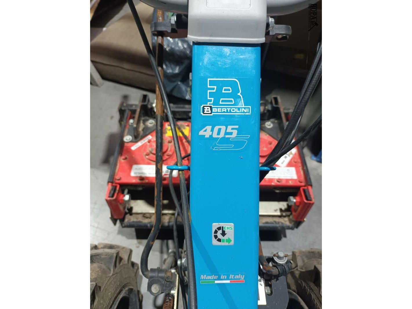 Tweewielige tractor Bertolini 405S met Rinaldi R2 rotoreg.