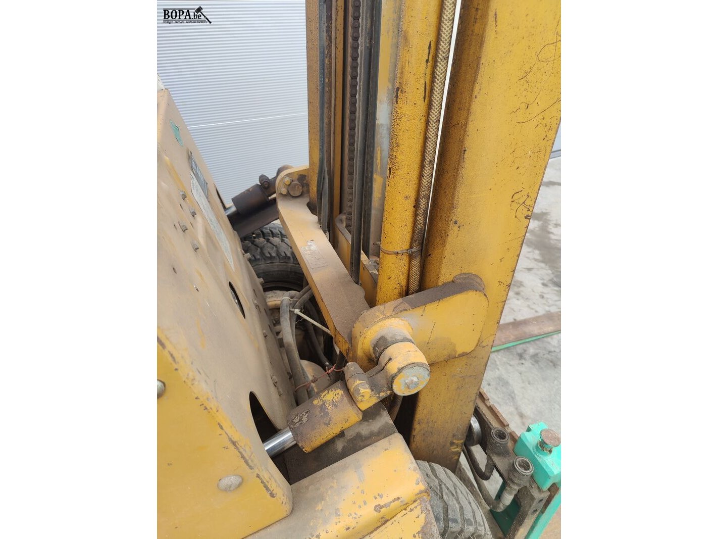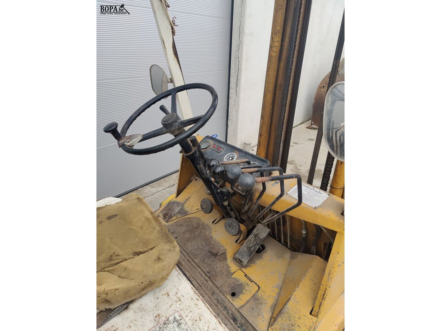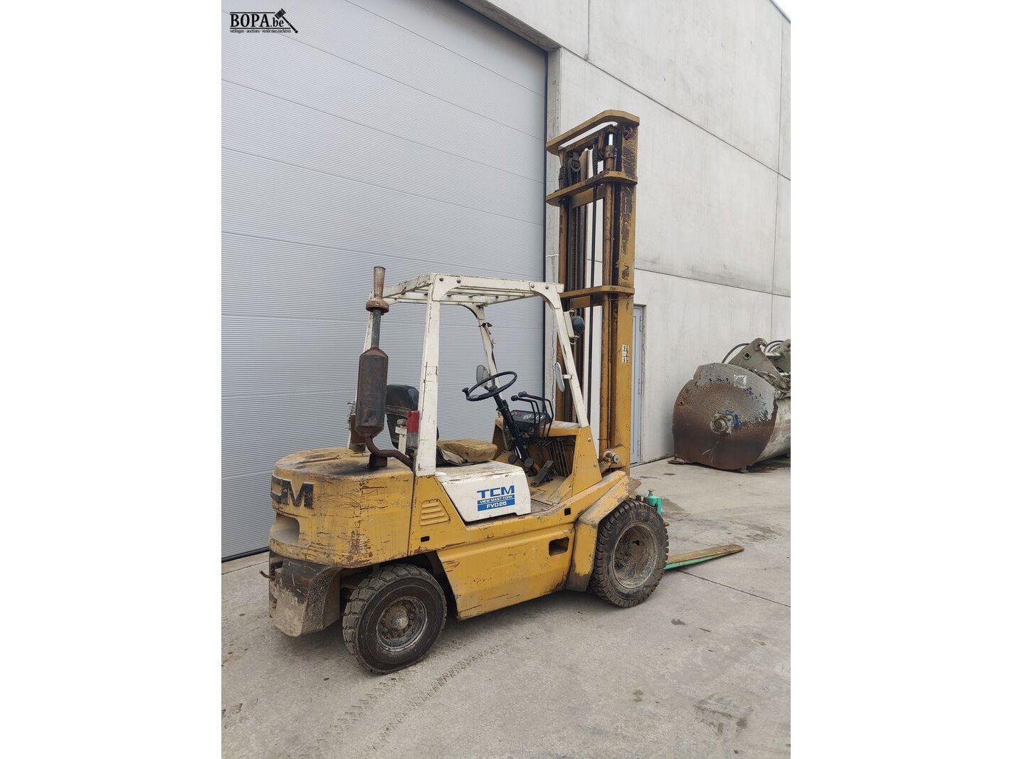 TCM heftruck Model: VM-550 365 Max. vorkhoogte 550 cm Tot 1700 kg hefvermogen Werkuren: 7988 Dubbele voorwielen (1 wiel na te zien) Diesel met voorverwarming Beschadigde zetel Verlichting na te zien Geen documenten Werkende staat