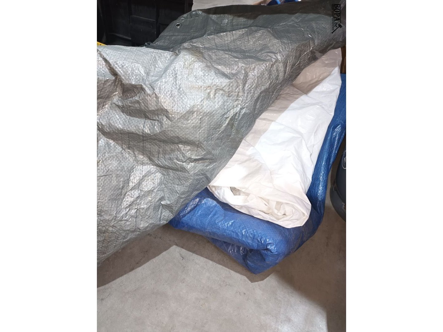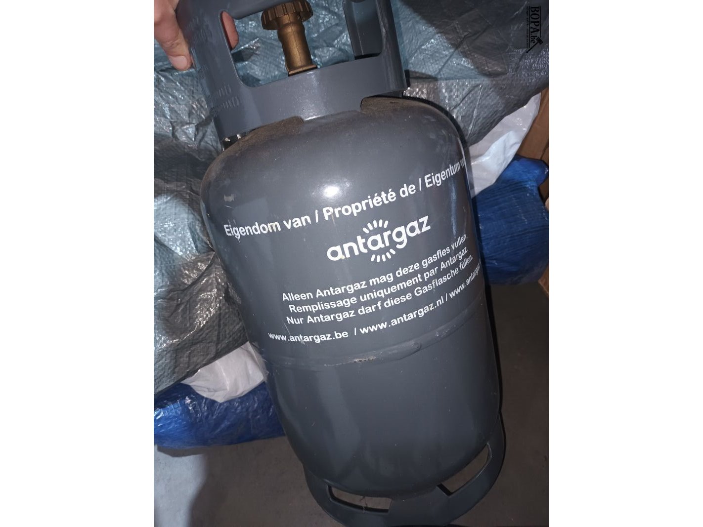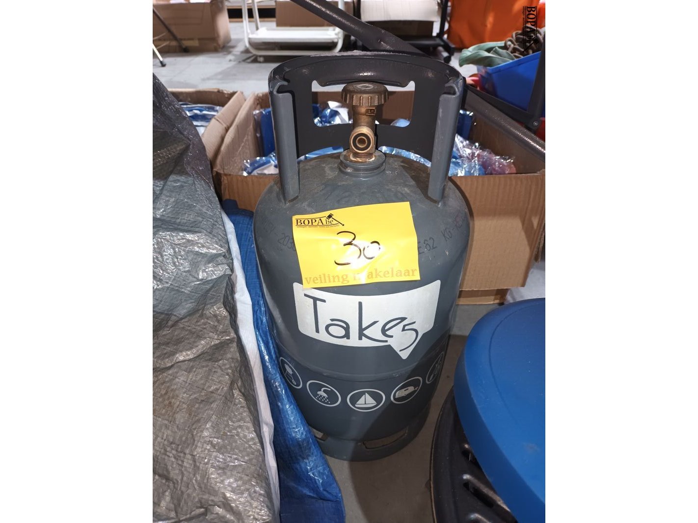 3 tentzeilen, 1 campingaz BBQ en een lege gasfles.
