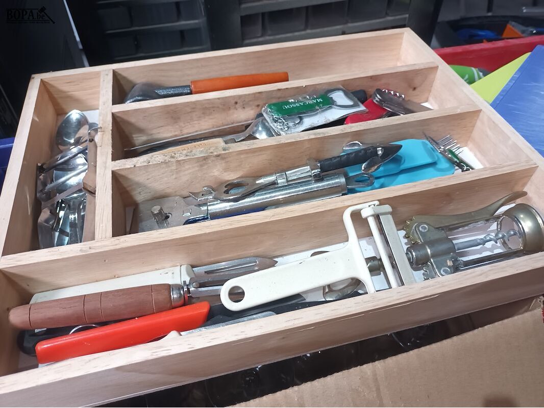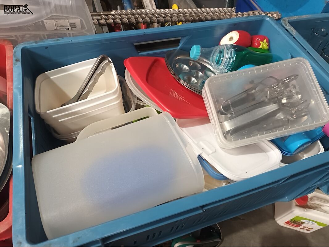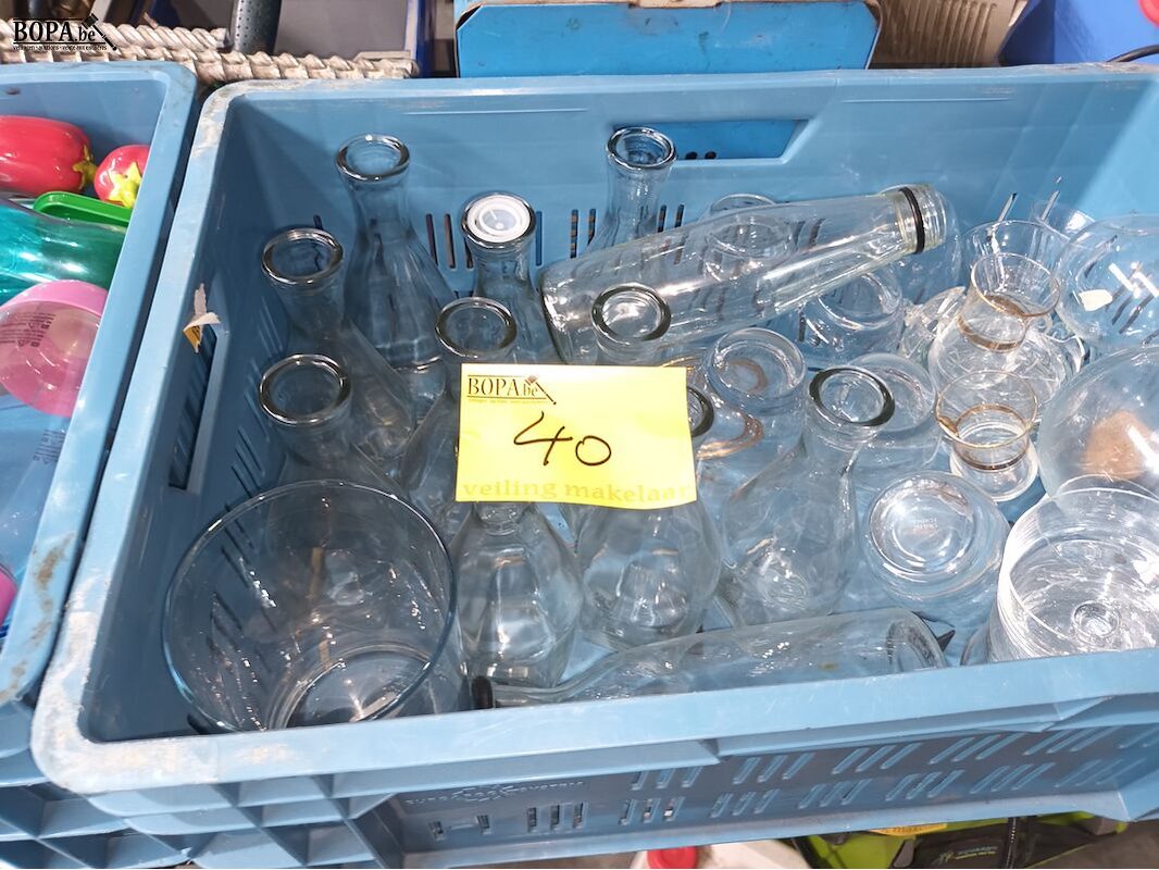 Lot diverse huisraad, servies, glazen, bestek. Bakken niet inbegrepen.