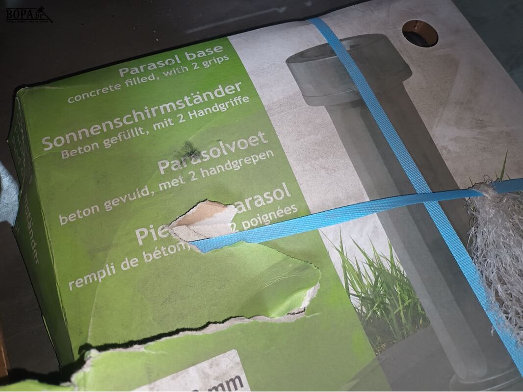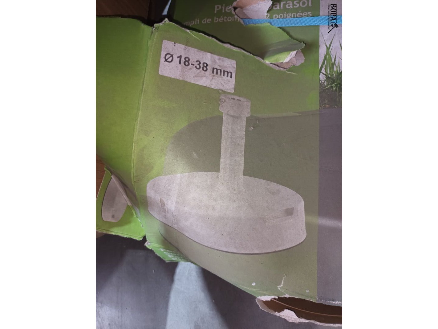 Parasolvoet met beton gevuld en met 2 handgrepen.