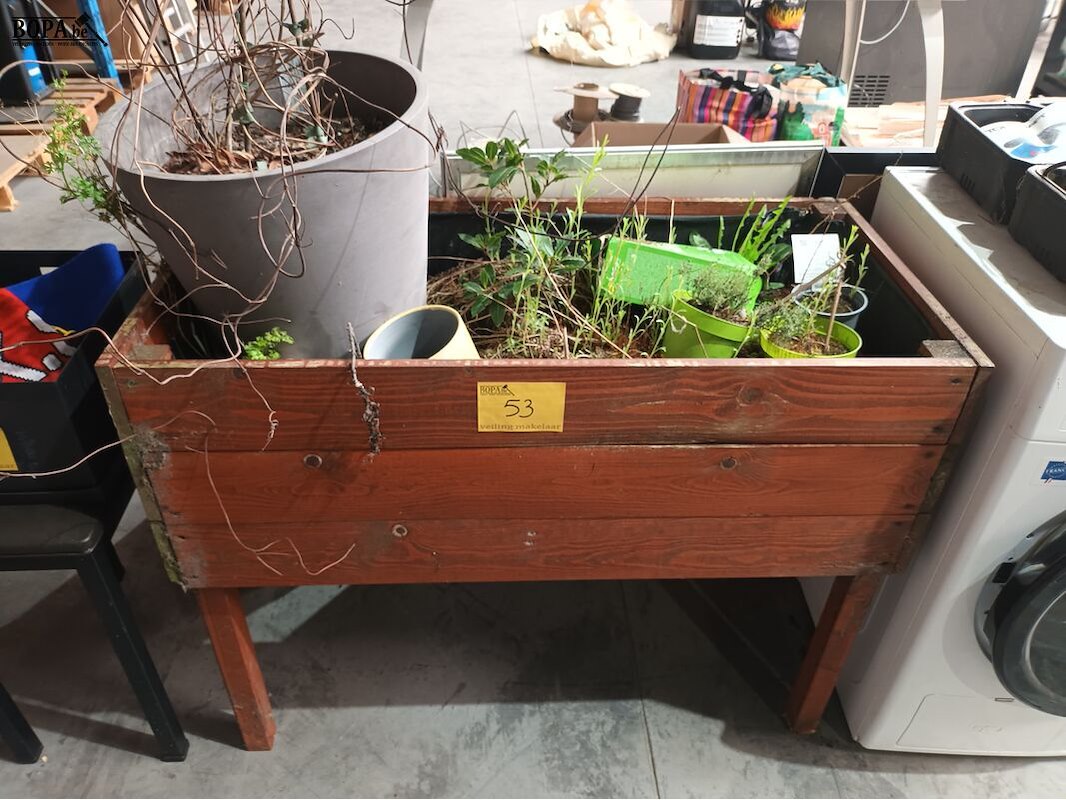 Houten verhoogde plantenbak met inhoud. 105 x 50 x 80 cm.