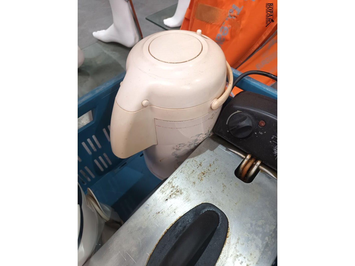 Keukentoestellen. 4 stuks. Snelkookpot, koffiezetapparaat, thermoskan en friteuse. Bak niet inbegrepen.