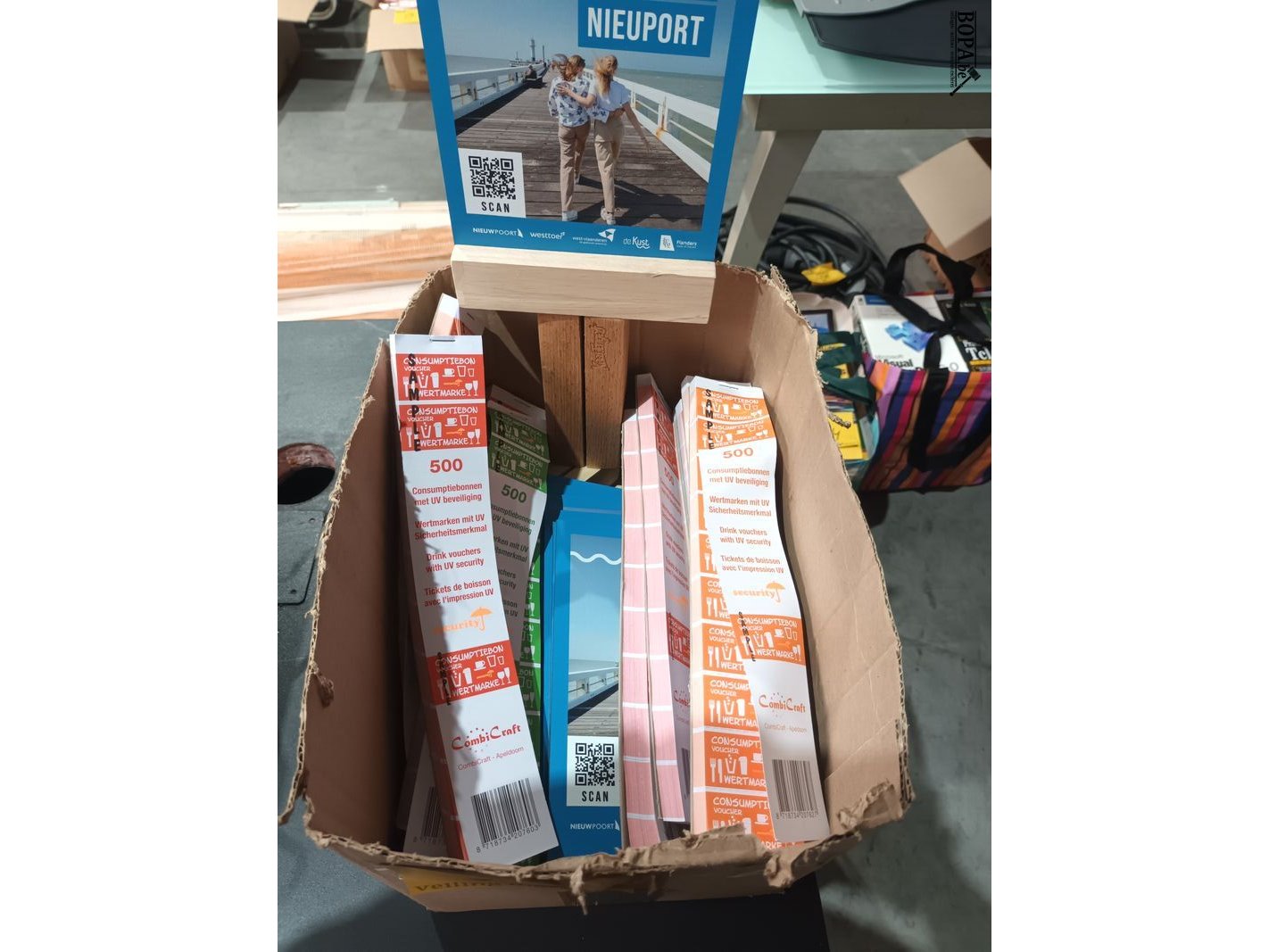 Doos met flyers en consumptiebonnen met UV beveiliging.