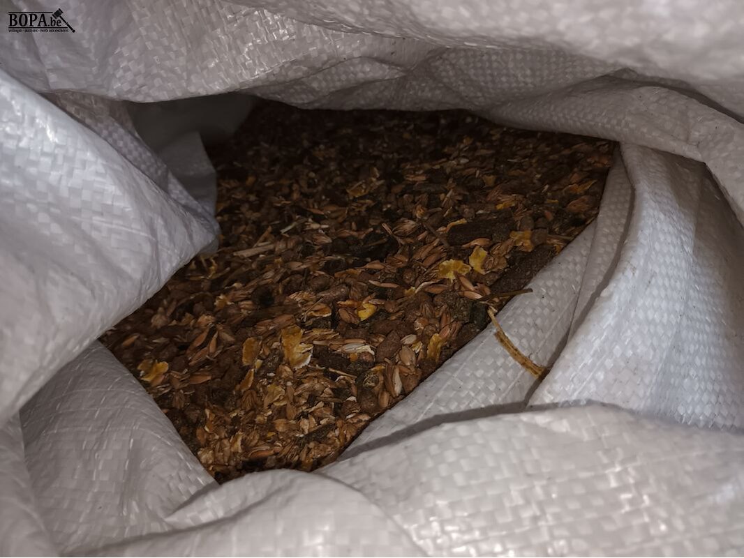 2 zakken met paardenvoer. Voeders afkomstig uit geledigde silo dat nog werd gevuld door de gefailleerde net voor de faling