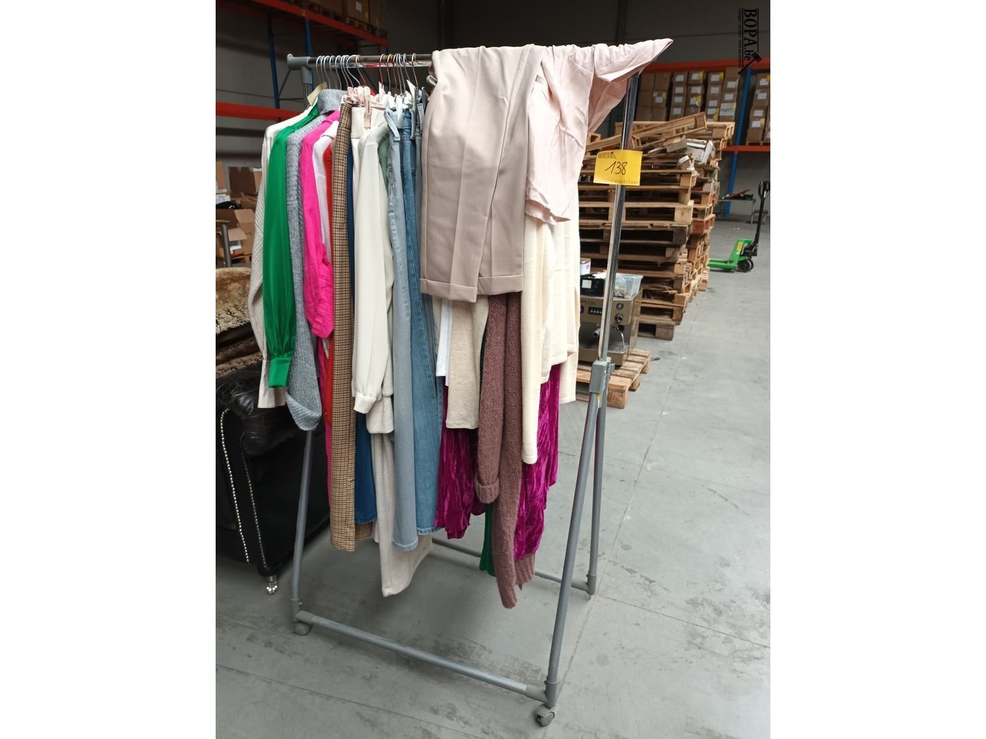 Rek met 30 stuks nieuwe retour kledij met een beschadiging of bevuild