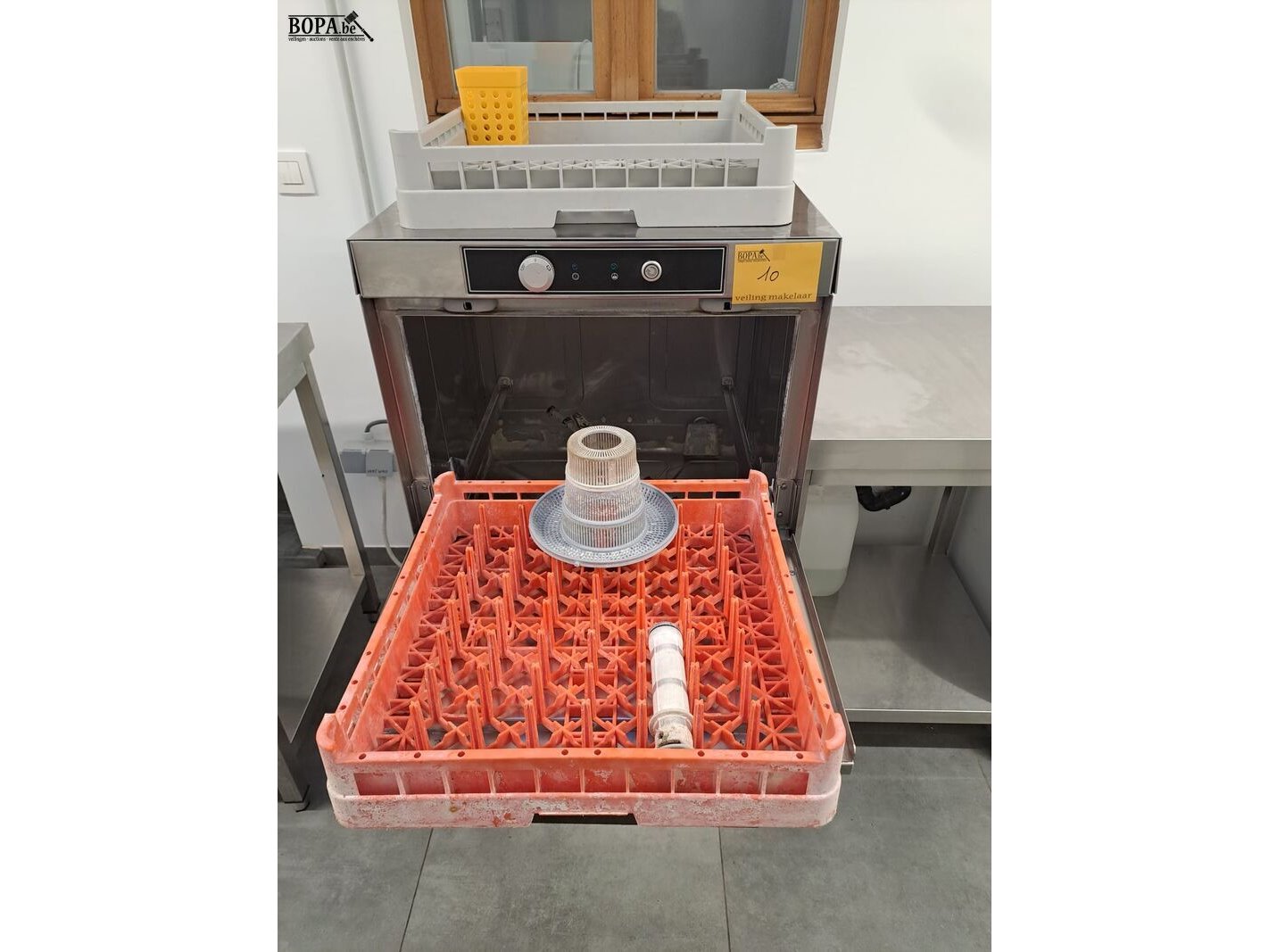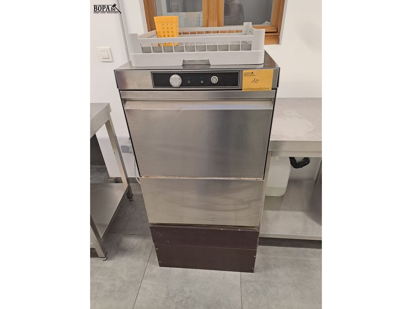 Lot 10 - glazenspoelmachine rvs met houten onderblok