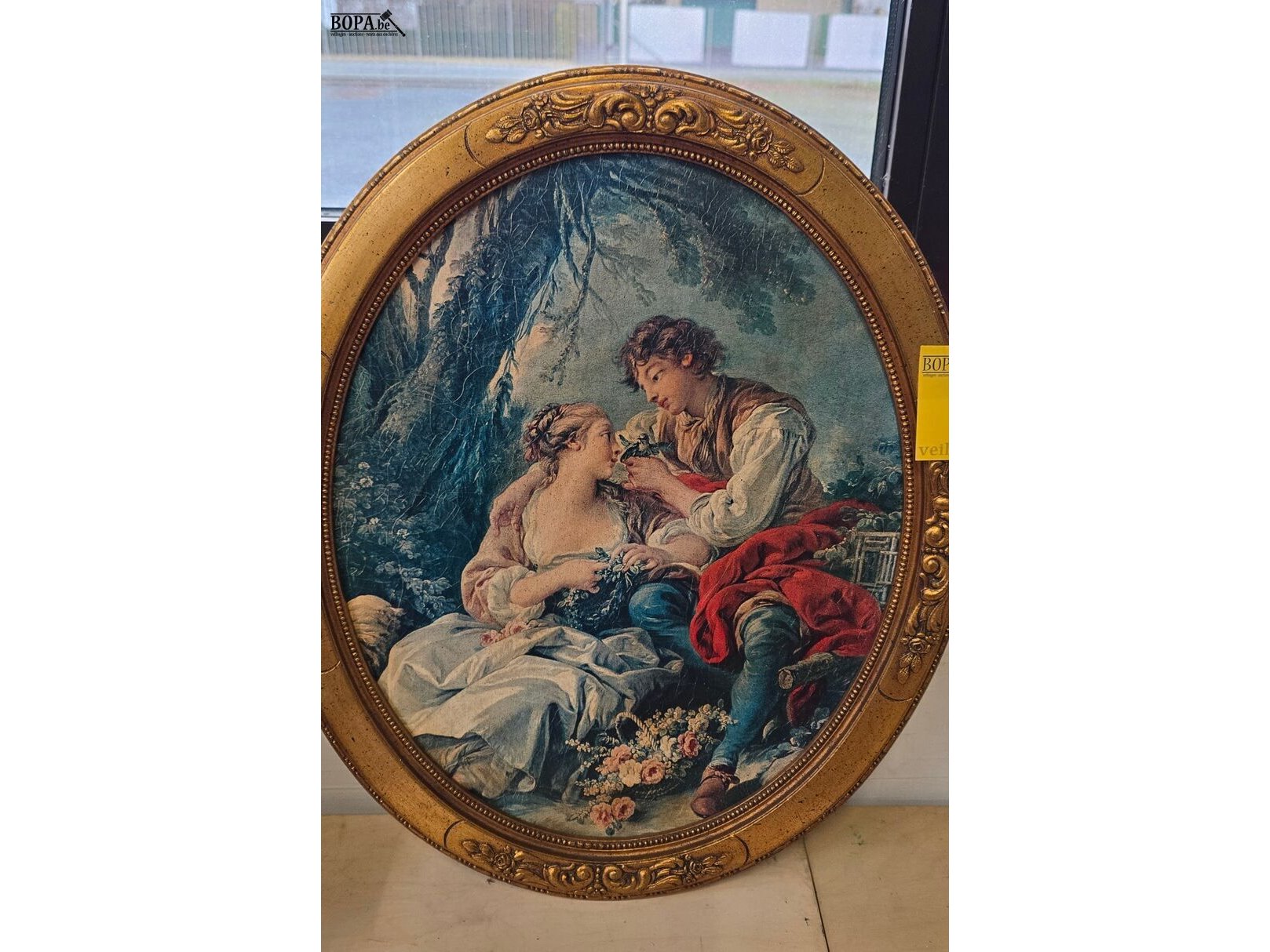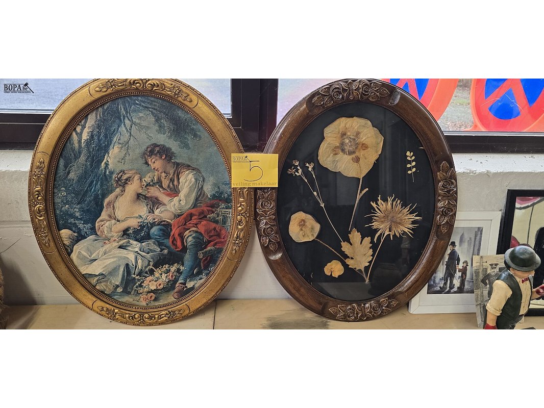 Ovalen kaders, La Cage reproductie Frans Rocco schilder Francois Boucher en een vintage herbarium