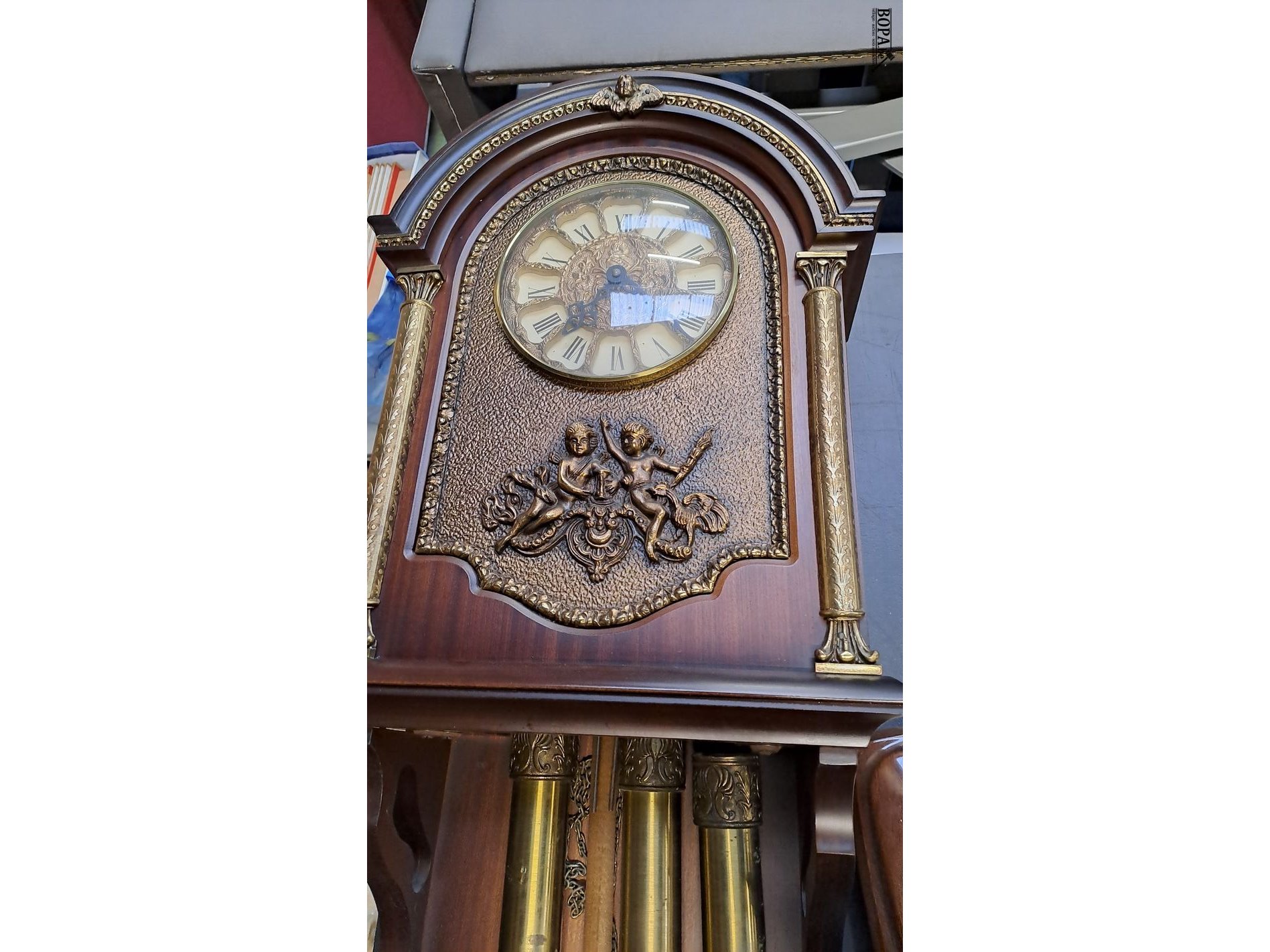 Pendule met decoratieve bronze elementen en kleine muurklok