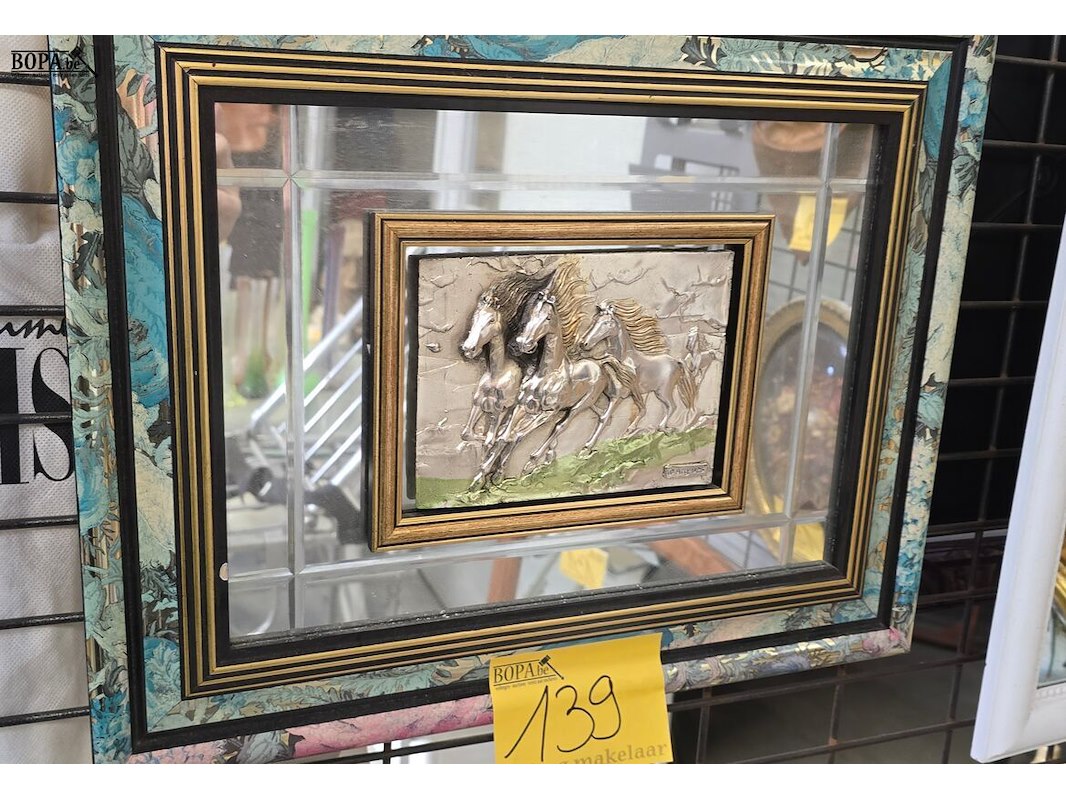 Art Nouveau spiegelschilderij met drie rennende parden in reliëf ARG 925