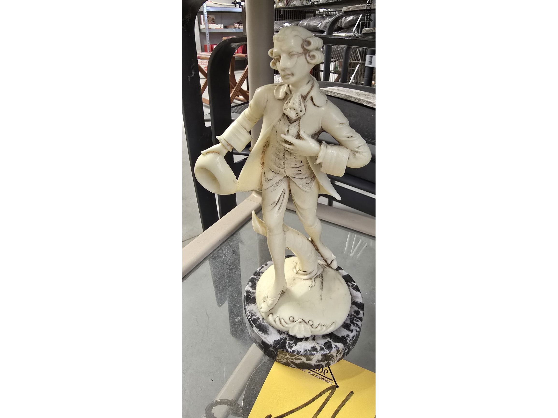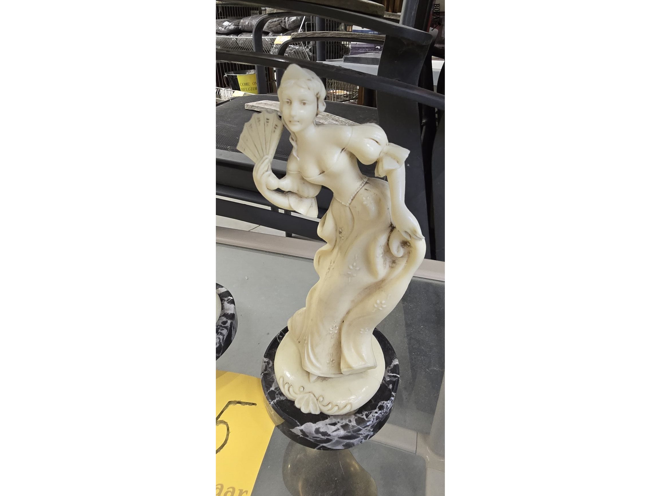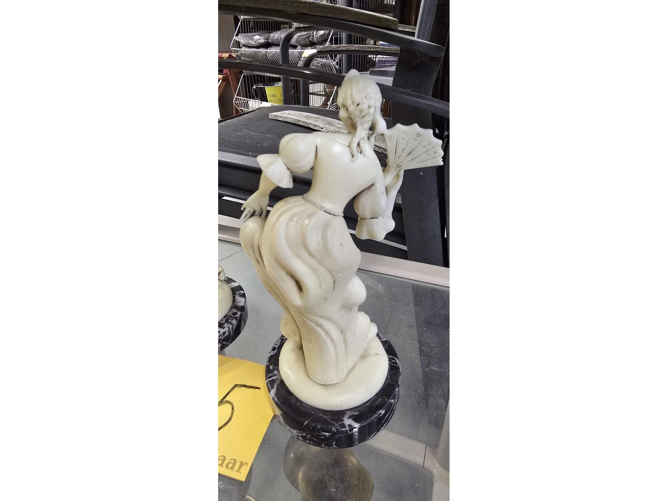 Koppel beeldjes in hars met ivoorkleurige afwerking op marmeren voet