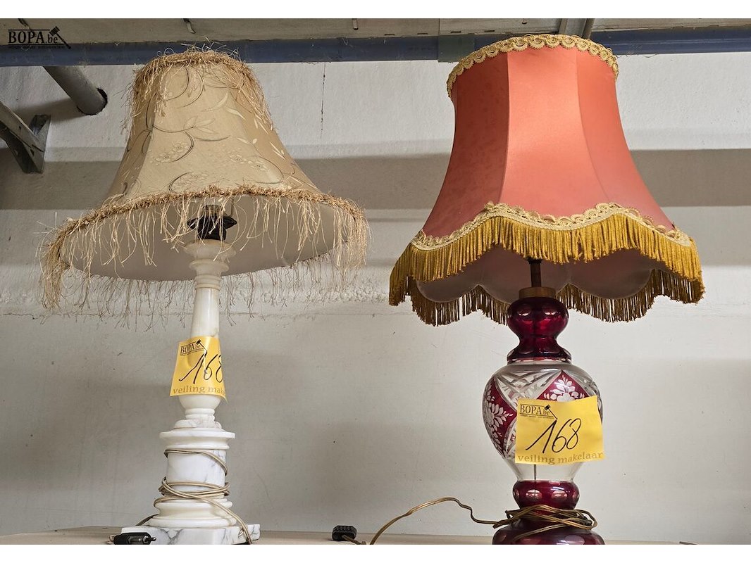 Marmeren tafellamp (gebarsten) en Glazen tafellamp