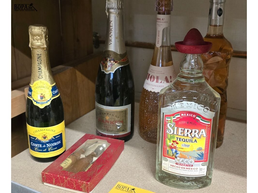 Lot alcoholische dranken 8 flessen, champagne, eristof, tequila… en opener