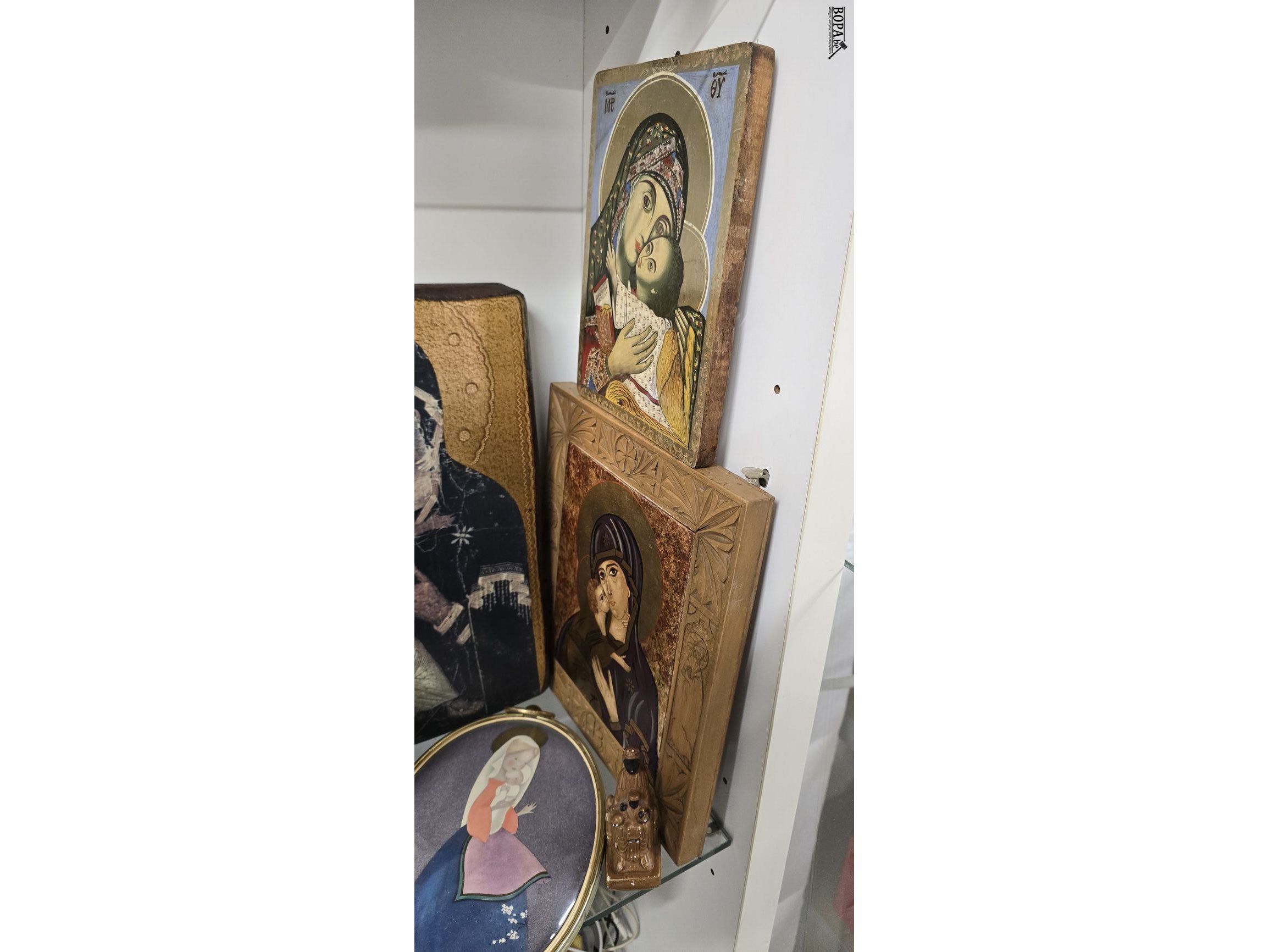 Lot religie, iconen waarvan 2 kleine met certifaat achteraan, bijbels...