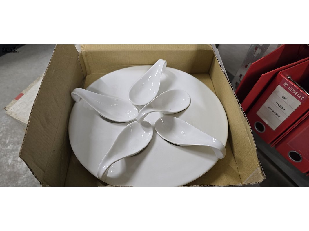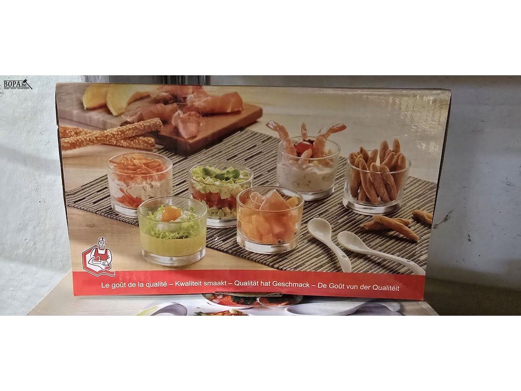 Apéroglaasjes 6 stuks en schaal met 5 lepels