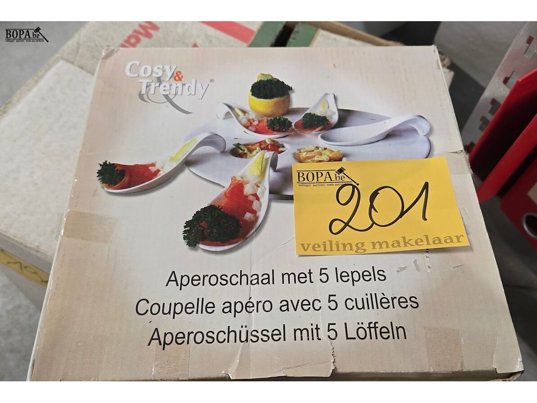 Lot 201 - apéroglaasjes en schaal met 5 lepels