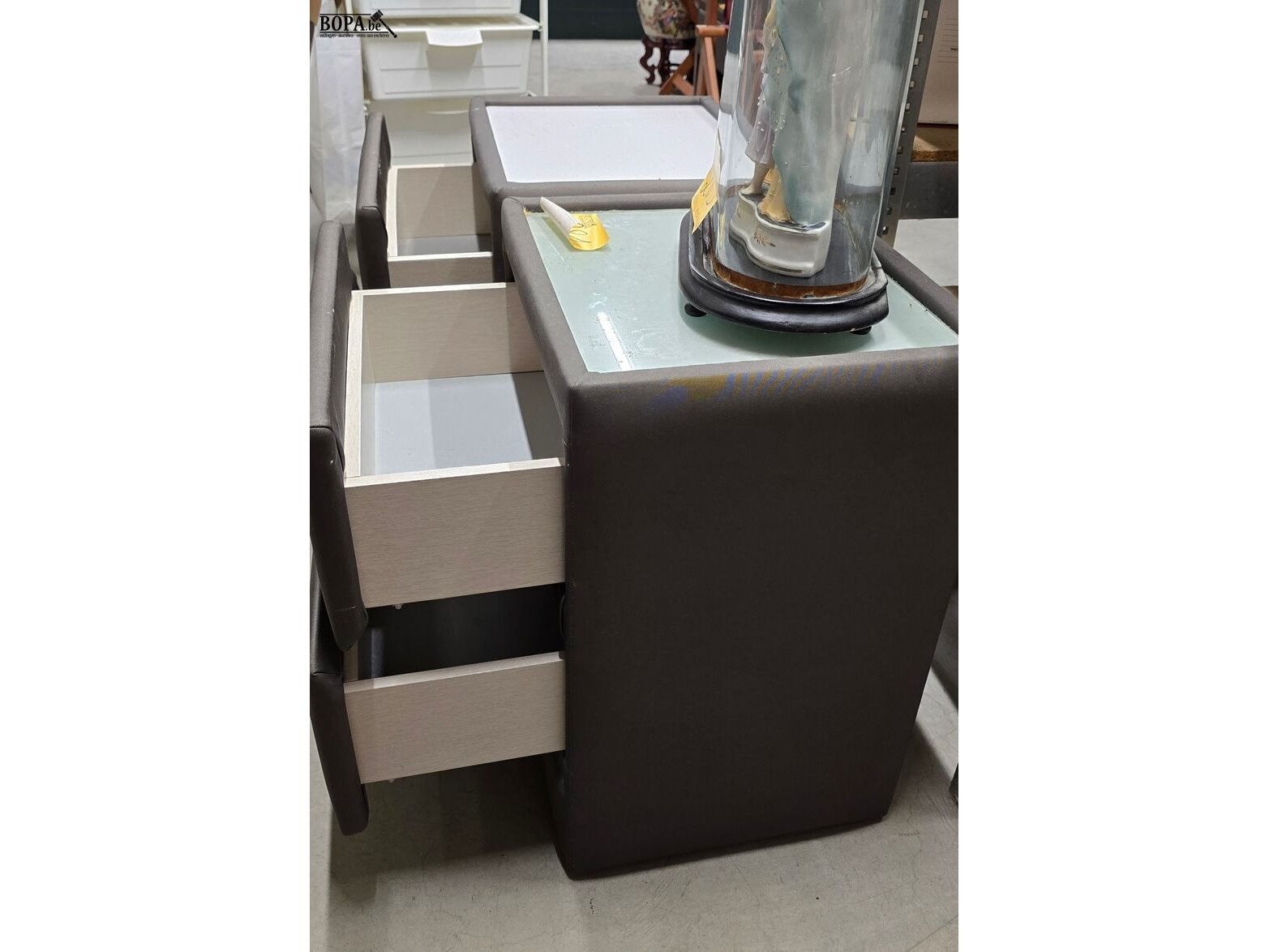 Nachtkastjes met 2 lades in lederlook 2 stuks (van 1 ontbreekt glazen bovenblad)