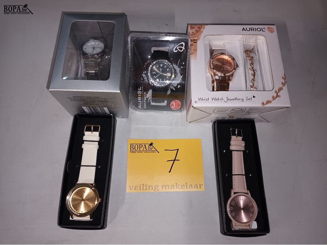 Dames polshorloges. 5 stuks. Nieuw in doosje. Auriol, Krontaler.