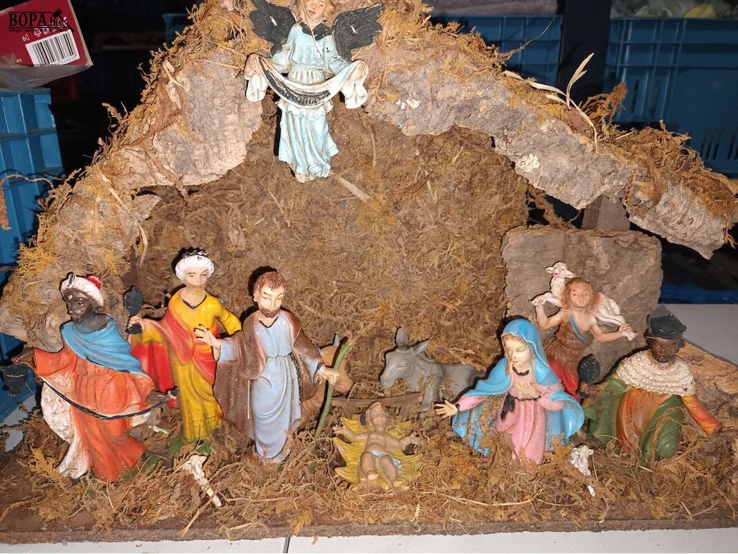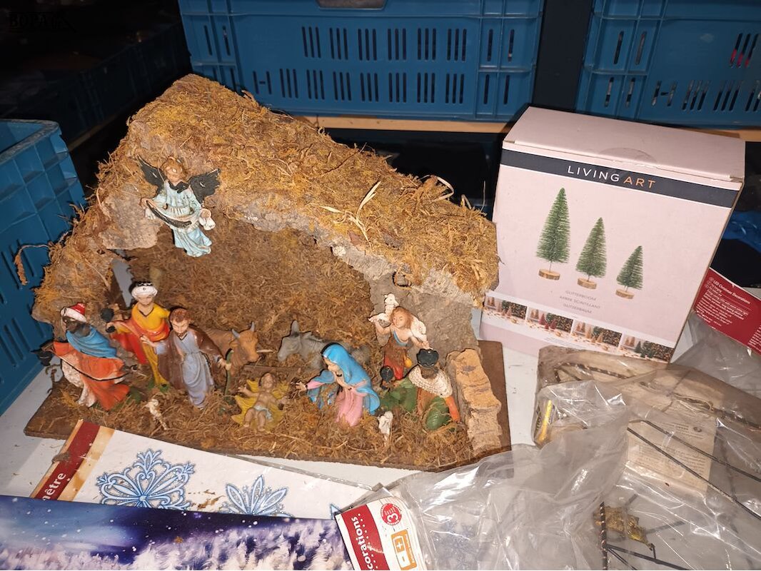 Kerstdecoratie waaronder kerststal, raamdecoratie. Bak niet inbegrepen.