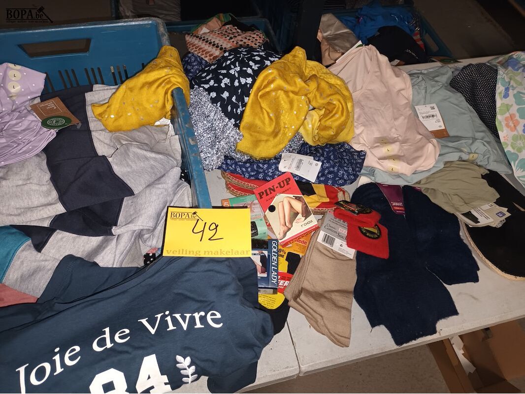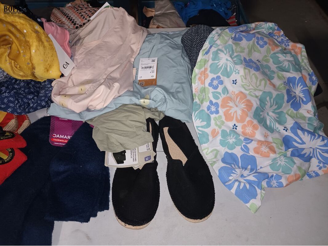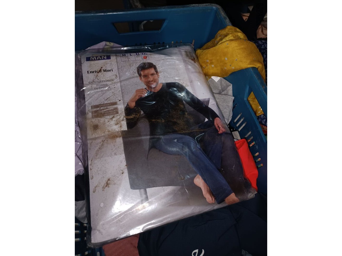 Lot kledij. Meestal maat large. Meestal nieuw met prijskaartje. Bak niet inbegrepen.