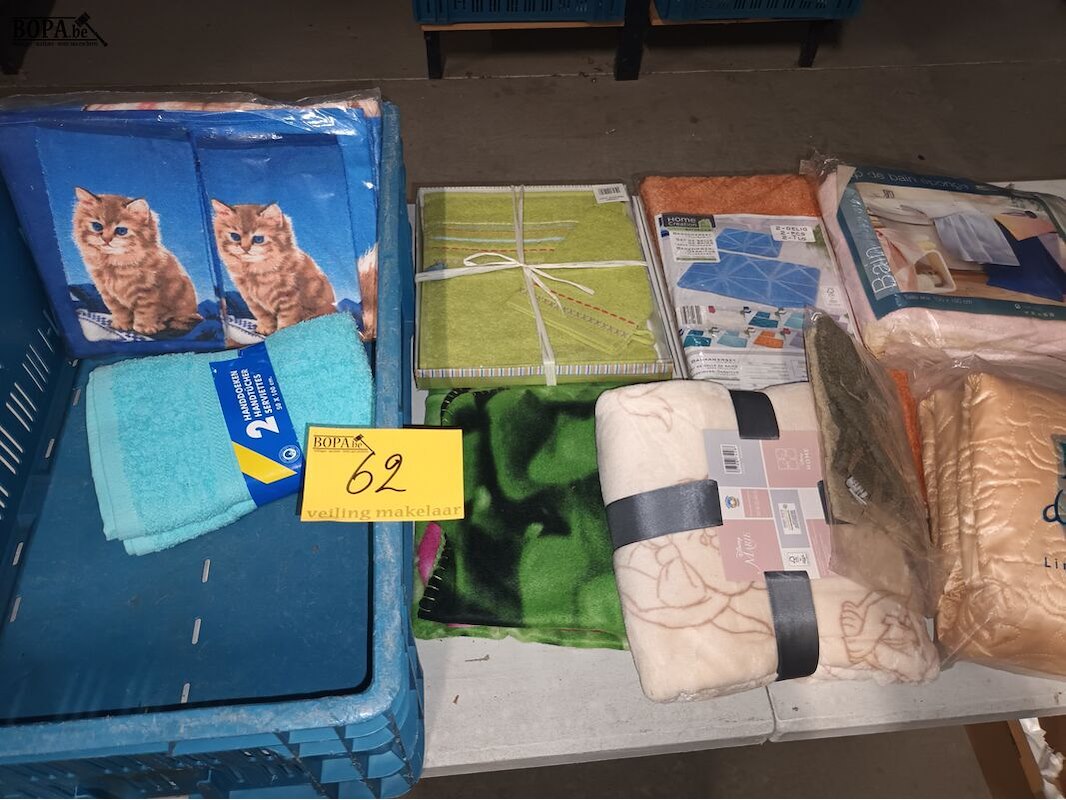 Plaid, bedlinnen, tafellinnen, handdoeken, washandjes. 9 stuks. Bak niet inbegrepen.