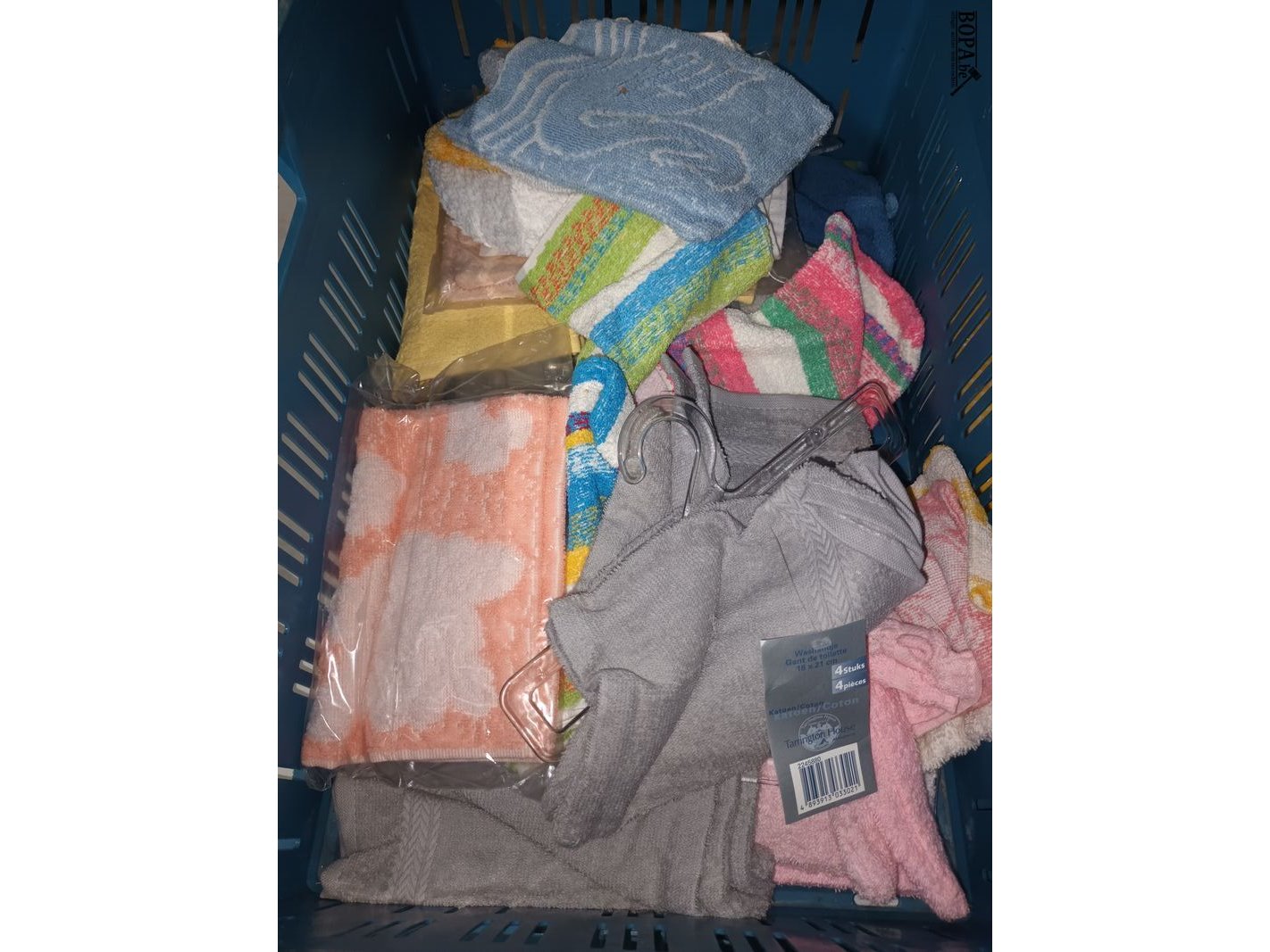 Lot badhanddoeken en tafelkleden. Bak niet inbegrepen.