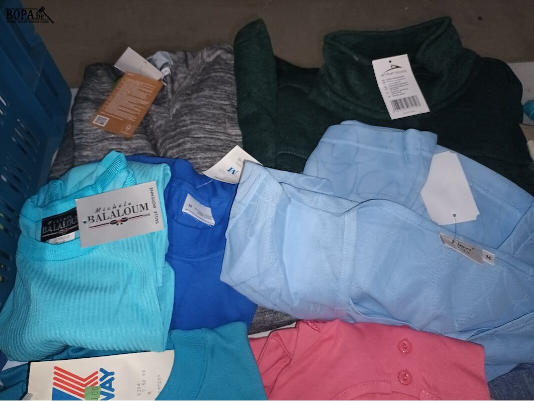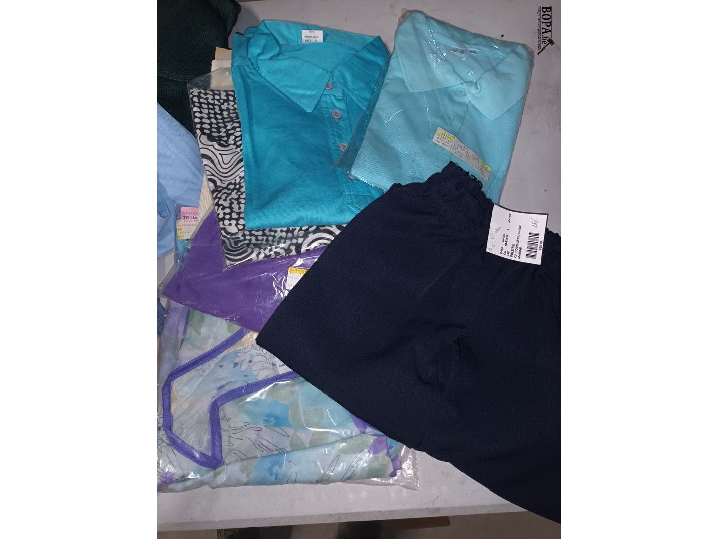 Lot kledij voor dames en heren. Meestal nieuw met prijskaartje. Bak niet inbegrepen.
